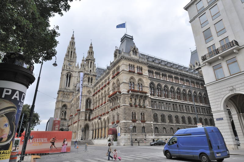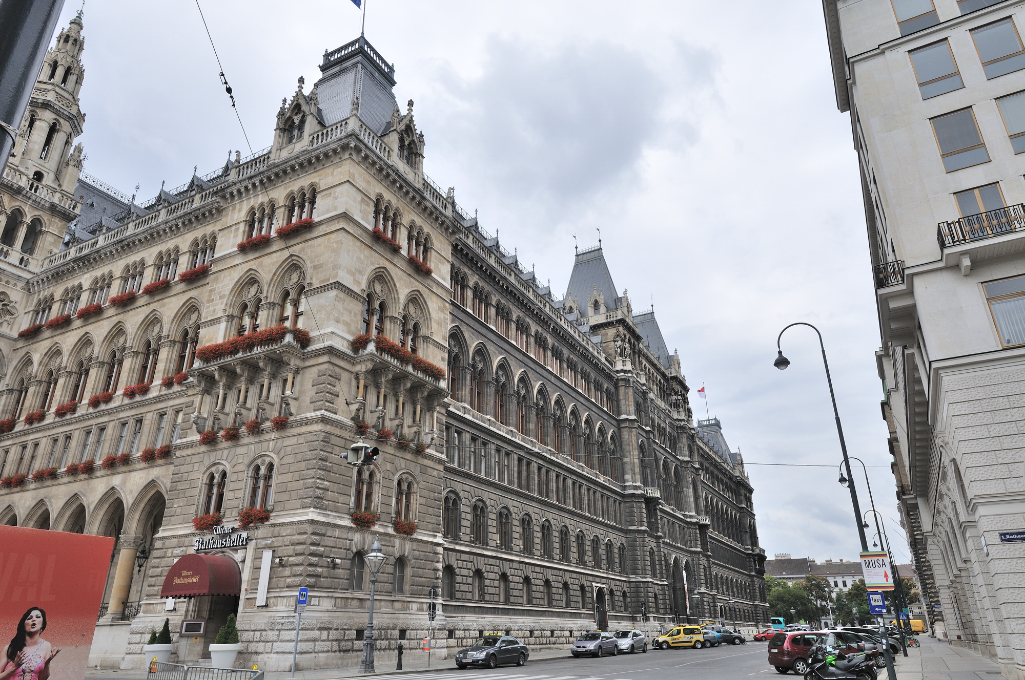 | ウィーン市庁舎 [Wiener Rathaus] (13:12)「南西方向」MAP 1872年から1883年にかけて、建築家のフリードリヒ・フォン・シュミットの設計を基にして建設され、ウィーン市長およびウィーン市議会が執務を行なう庁舎として利用されている。 |