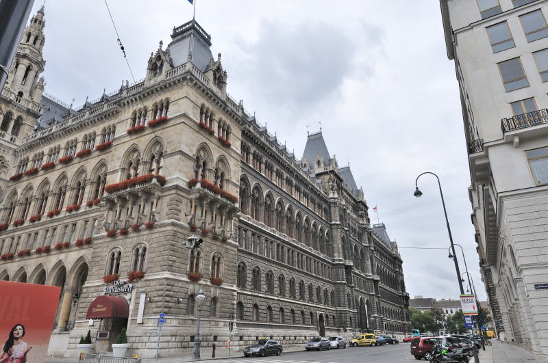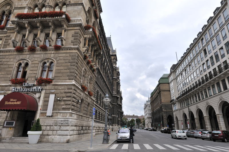 | フェルダー通り [Felderstraße] (14:17)「西方向」MAP 左手の建物は、ウィーン市庁舎 [Wiener Rathaus] 。 |