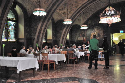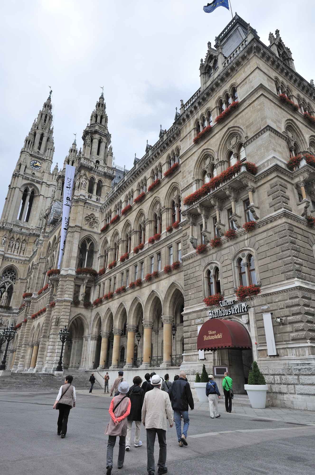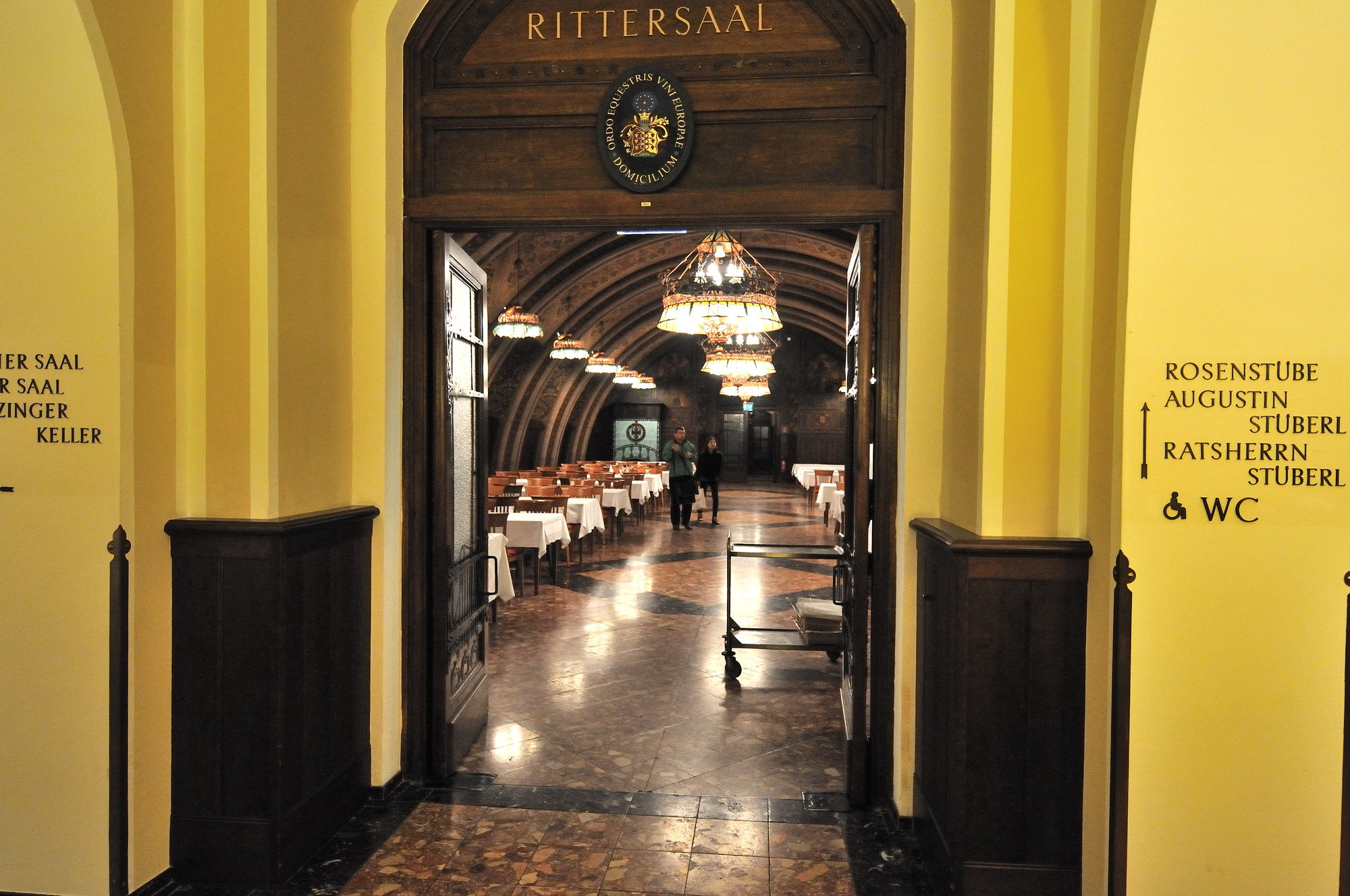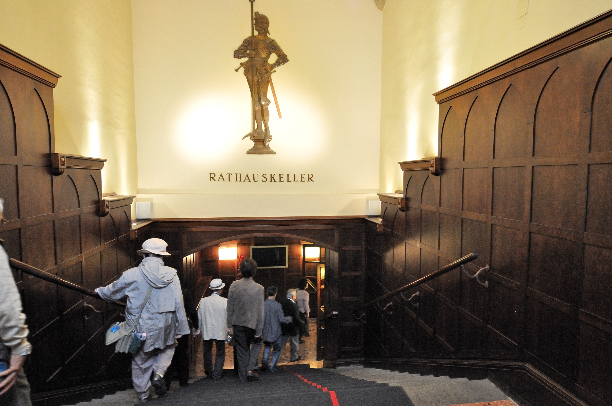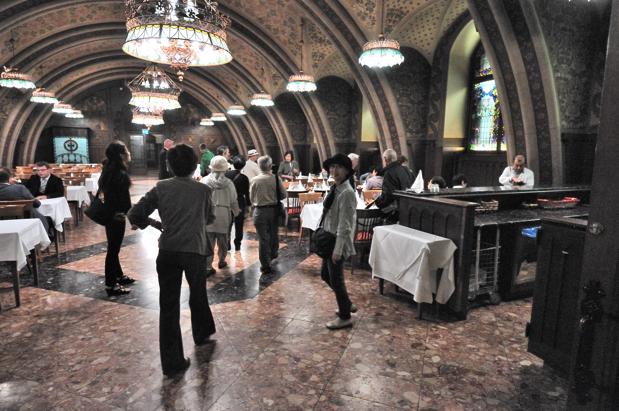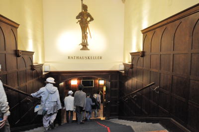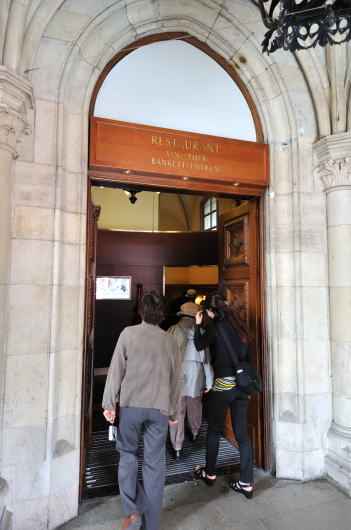 | 市庁舎地下のレストラン [Restaurants Wiener Rathauskeller] (13:14)「西北西方向」MAP 入口の上には、レストラン、ワインショップ、宴会センターと書かれている。 |