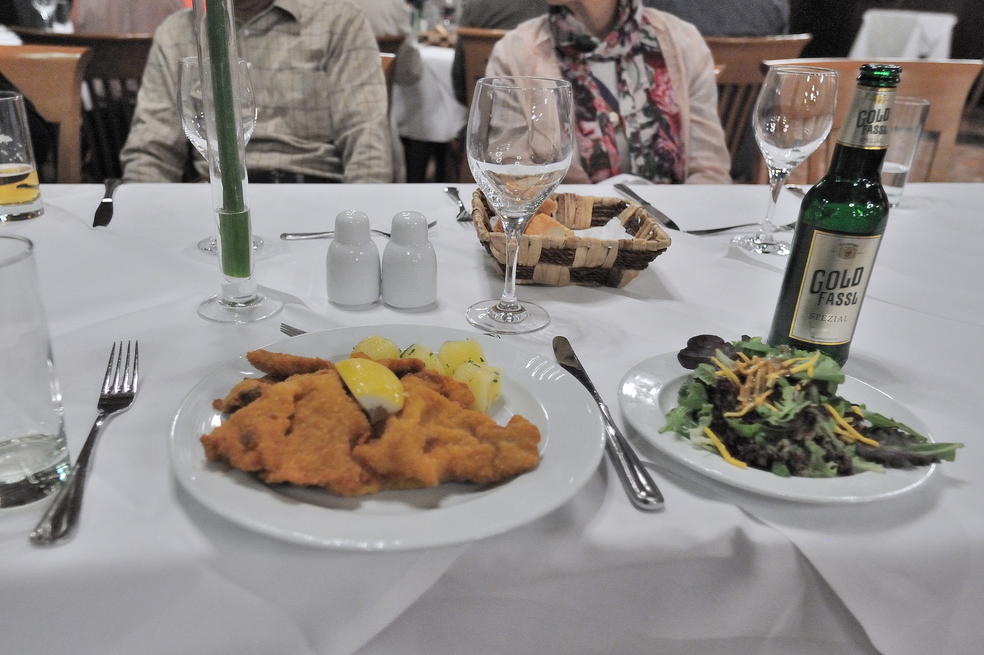 | ウィーン風カツレツ (ヴィーナー・シュニッツェル)[Wiener Schnitzel] (13:35) MAP ウィーン風カツレツはイタリアのミラノから伝わったといわれている。 ヨハン・シュトラウス1世が作曲した『ラデツキー行進曲』でも有名なラデッキー将軍が、ミラノに遠征した時によく食べていたミラノ風カツレツを自国でも是非食べたいと思い、コックを自国に連れて帰ったのが始まりで、今ではオーストリアの名物料理になっている。 |