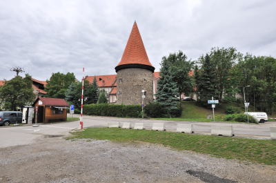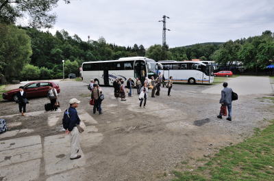| エッゲンベルク醸造所 [Pivovar Eggenberg] の駐車場からの風景。 チェスキー・クルムロフの観光には、この駐車場を利用。 | |