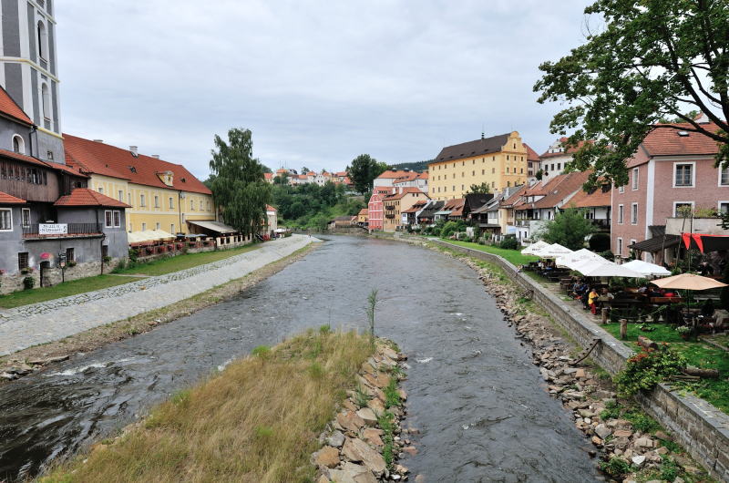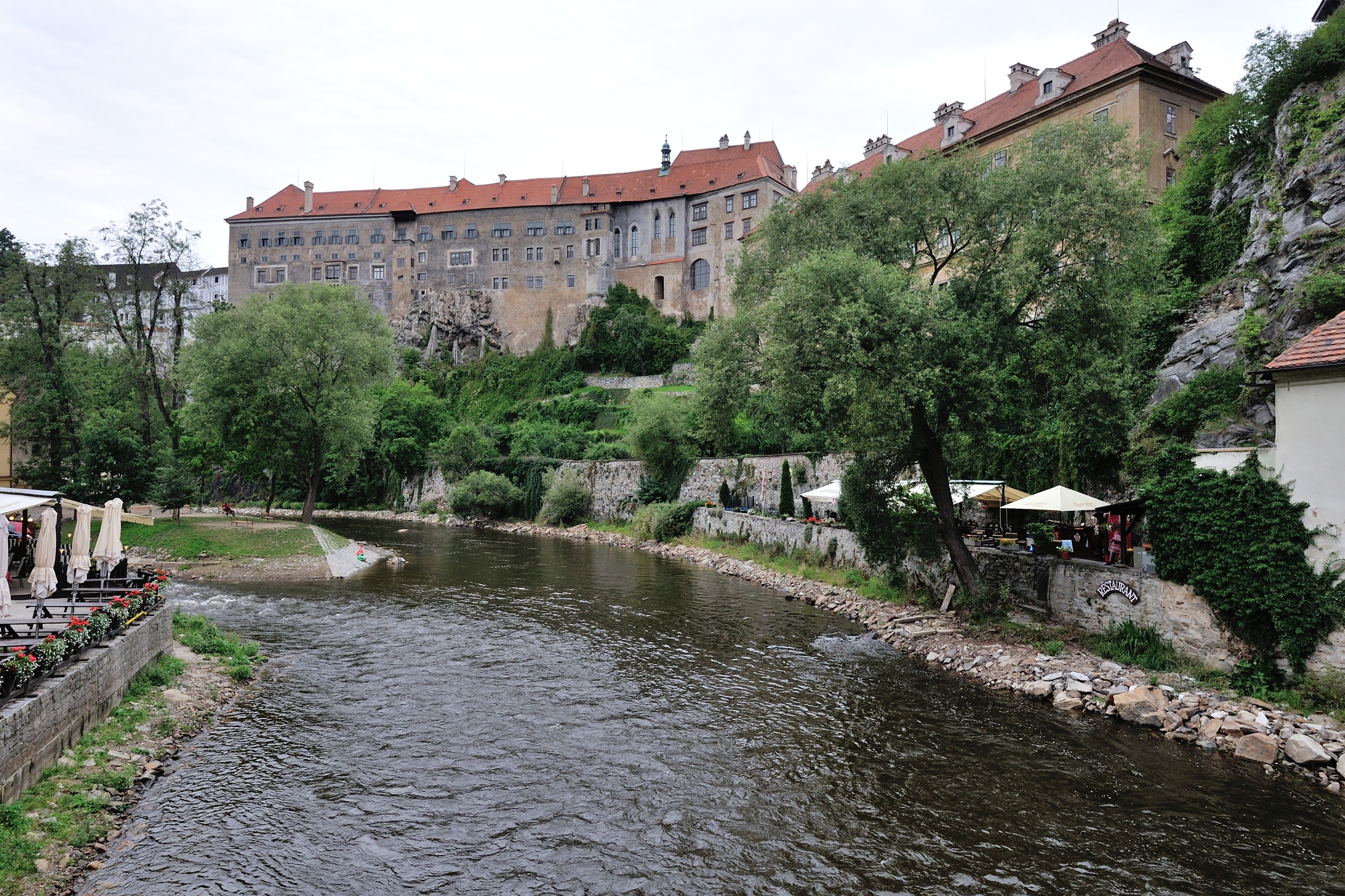 | チェスキー・クルムロフ城 (19:10)「北西方向」MAP ヴルタヴァ川 [Vltava] のほとりに建つチェスキー・クルムロフ城 [Castle Český Krumlov] 。 |