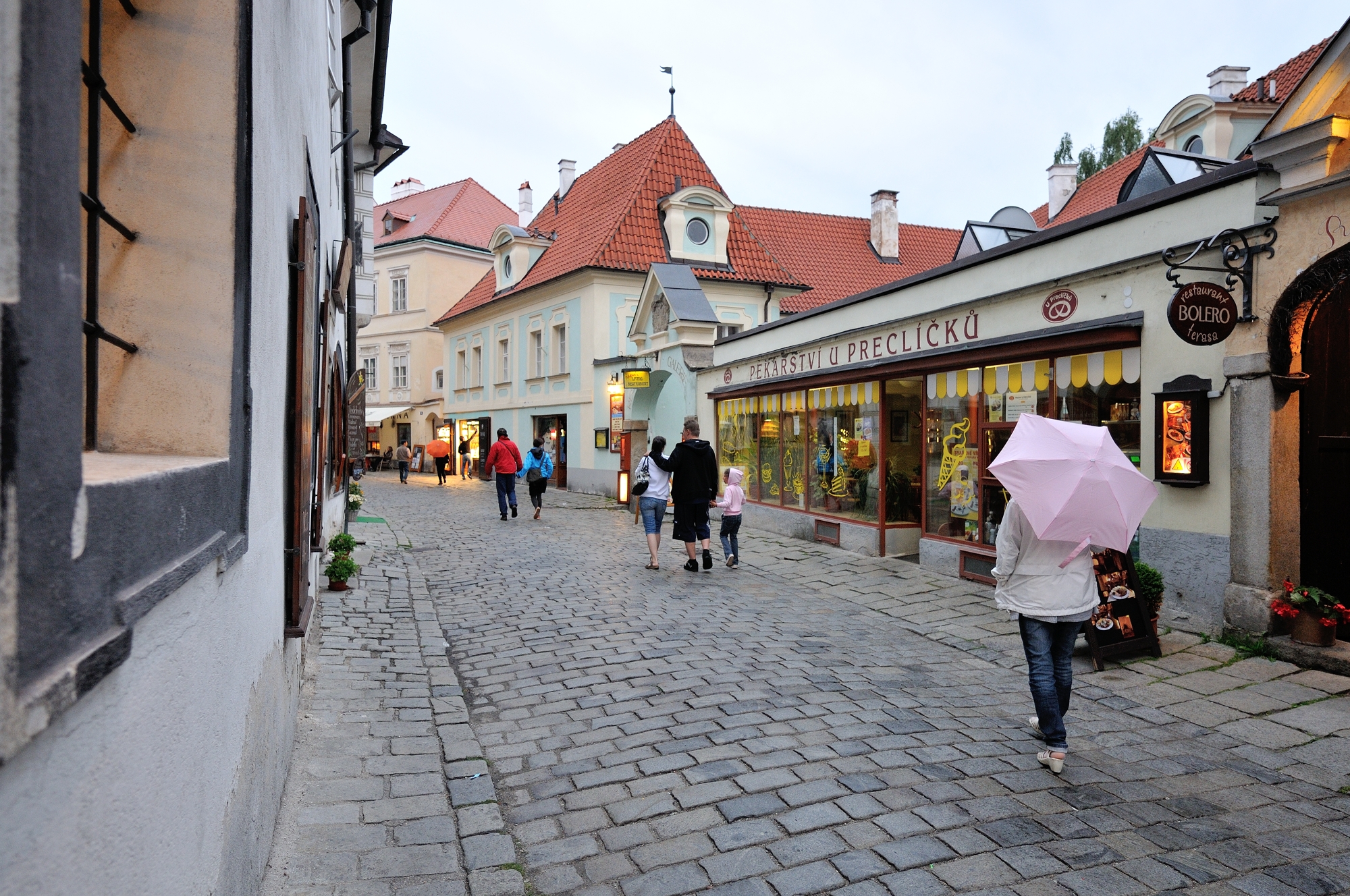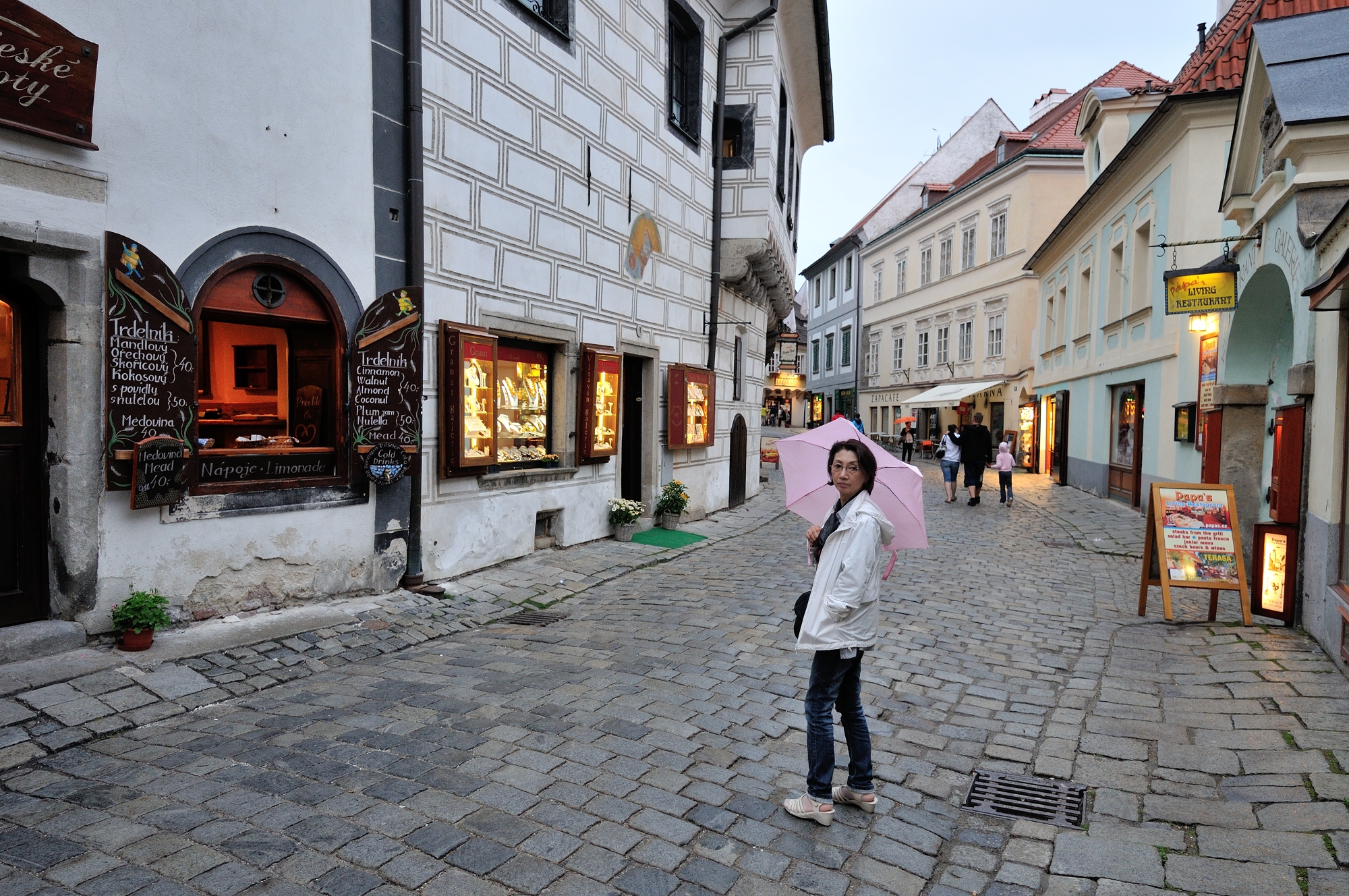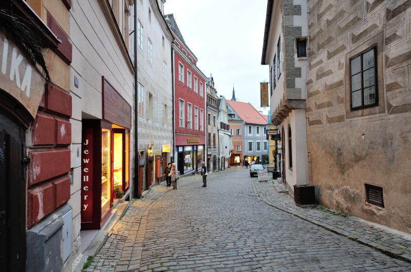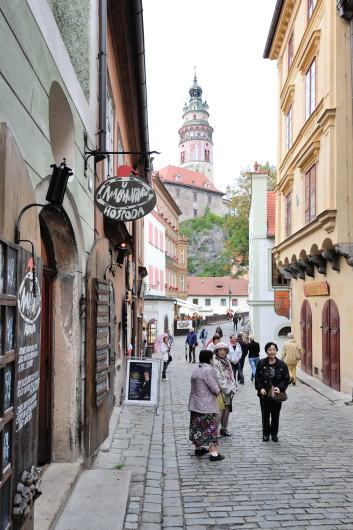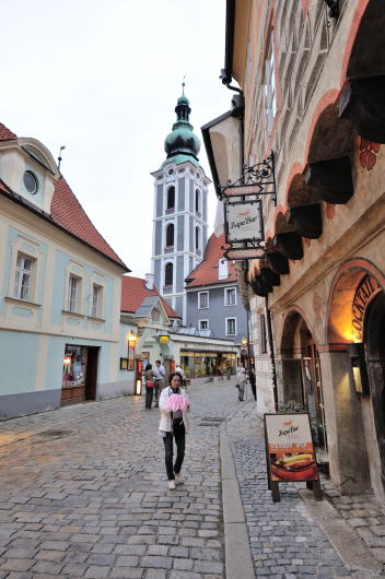 | ラドニチュニー通り [Radniční] (19:13)「北北東方向」MAP チェスキー・クルムロフ城の塔 [Castle Tower, Český Krumlov] |