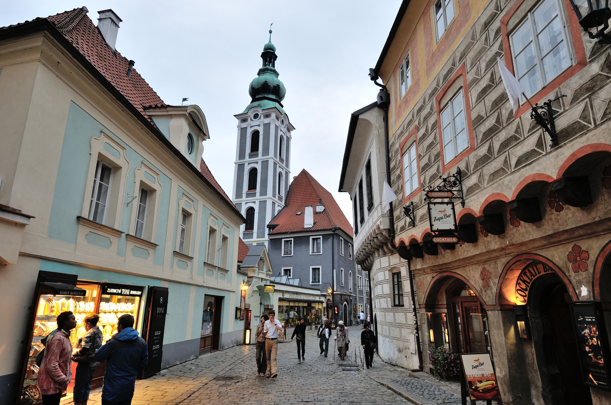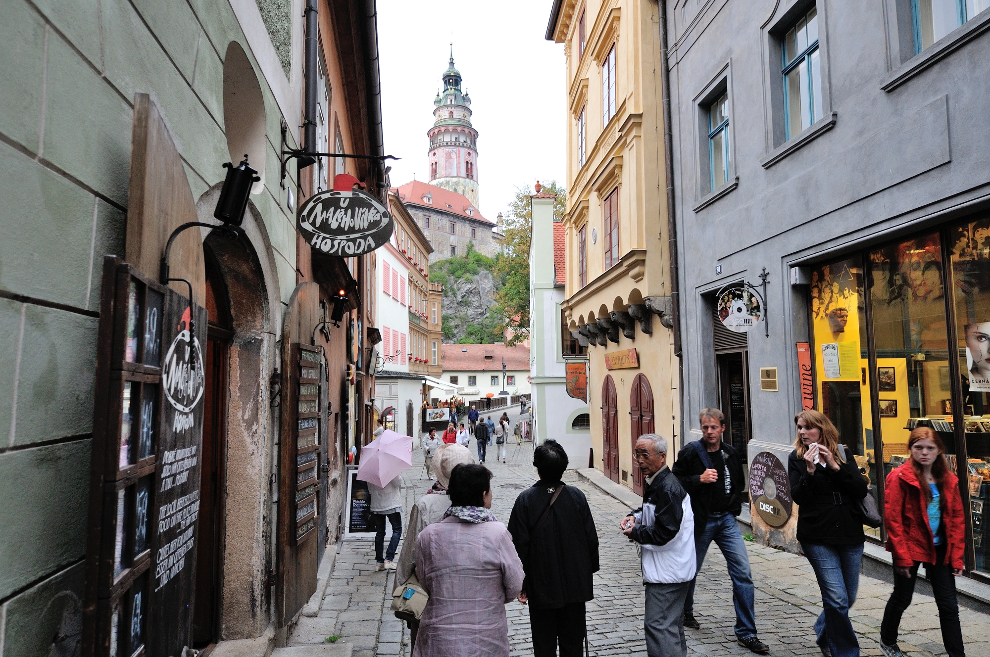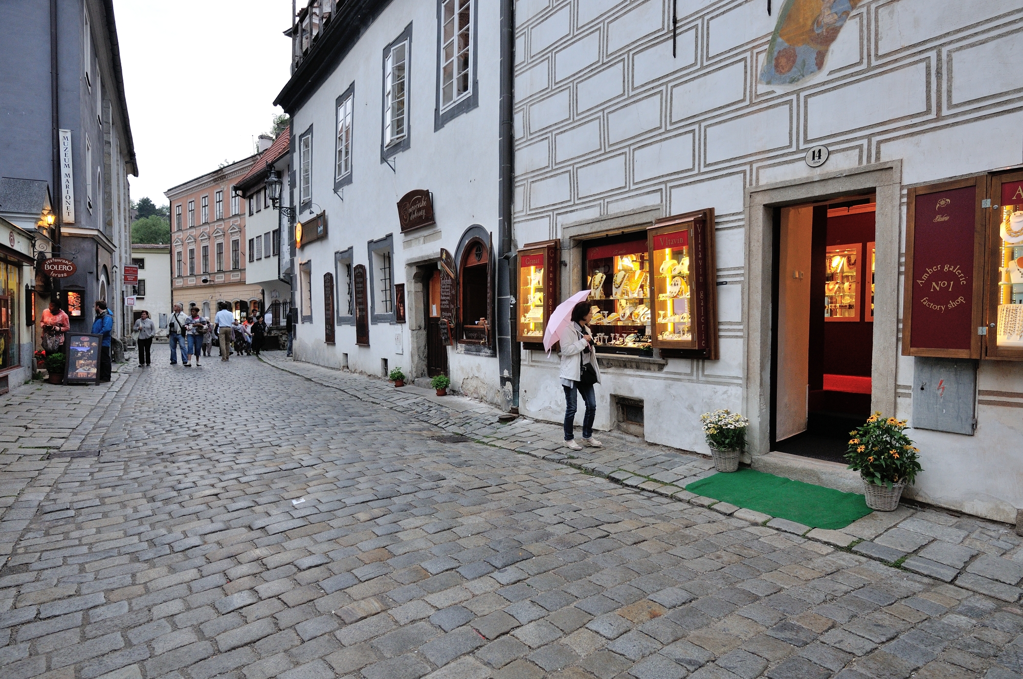 | ラドニチュニー通り [Radniční] (19:13)「北北東方向」MAP チェスキー・クルムロフ城の塔 [Castle Tower, Český Krumlov] |