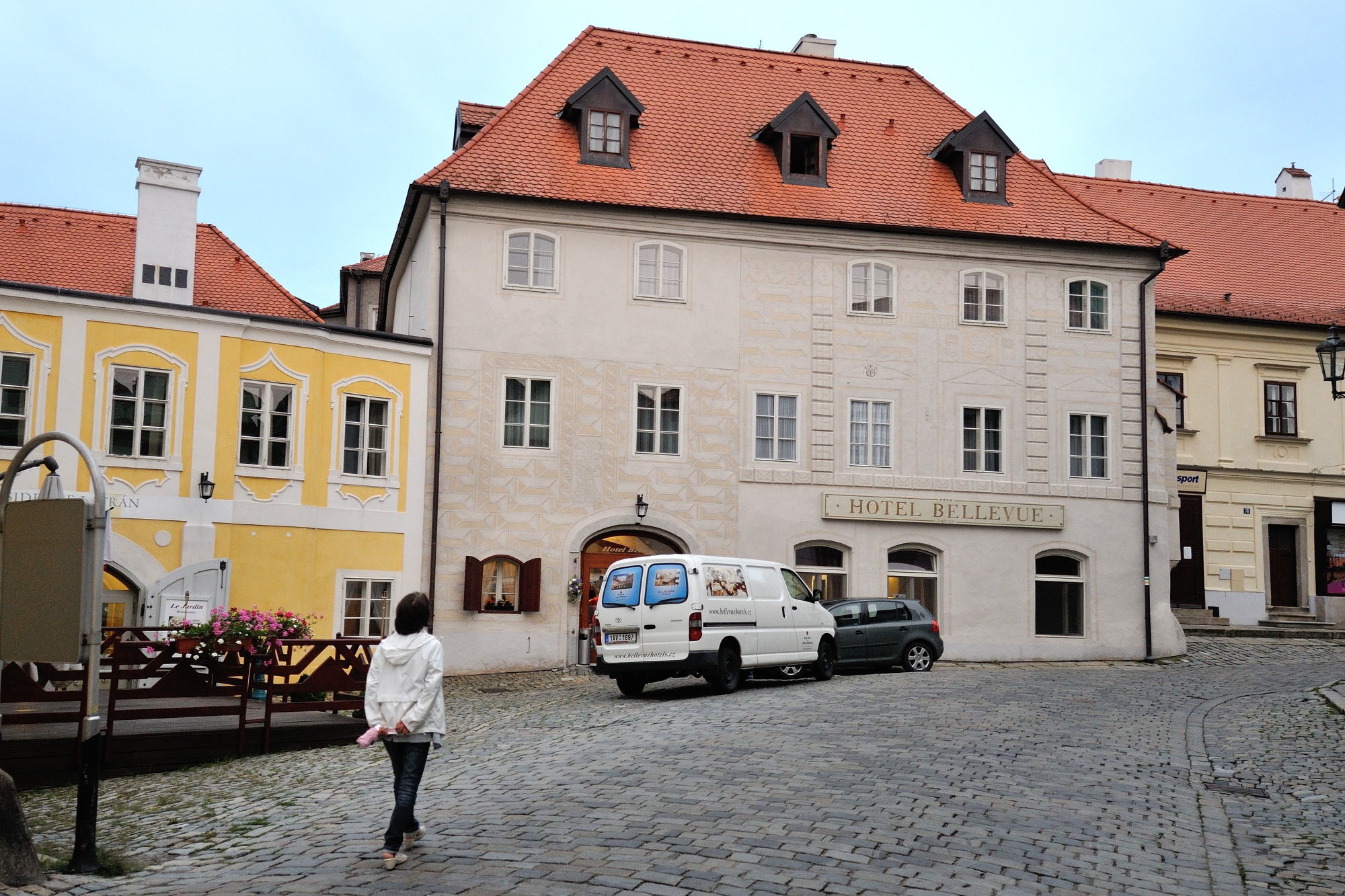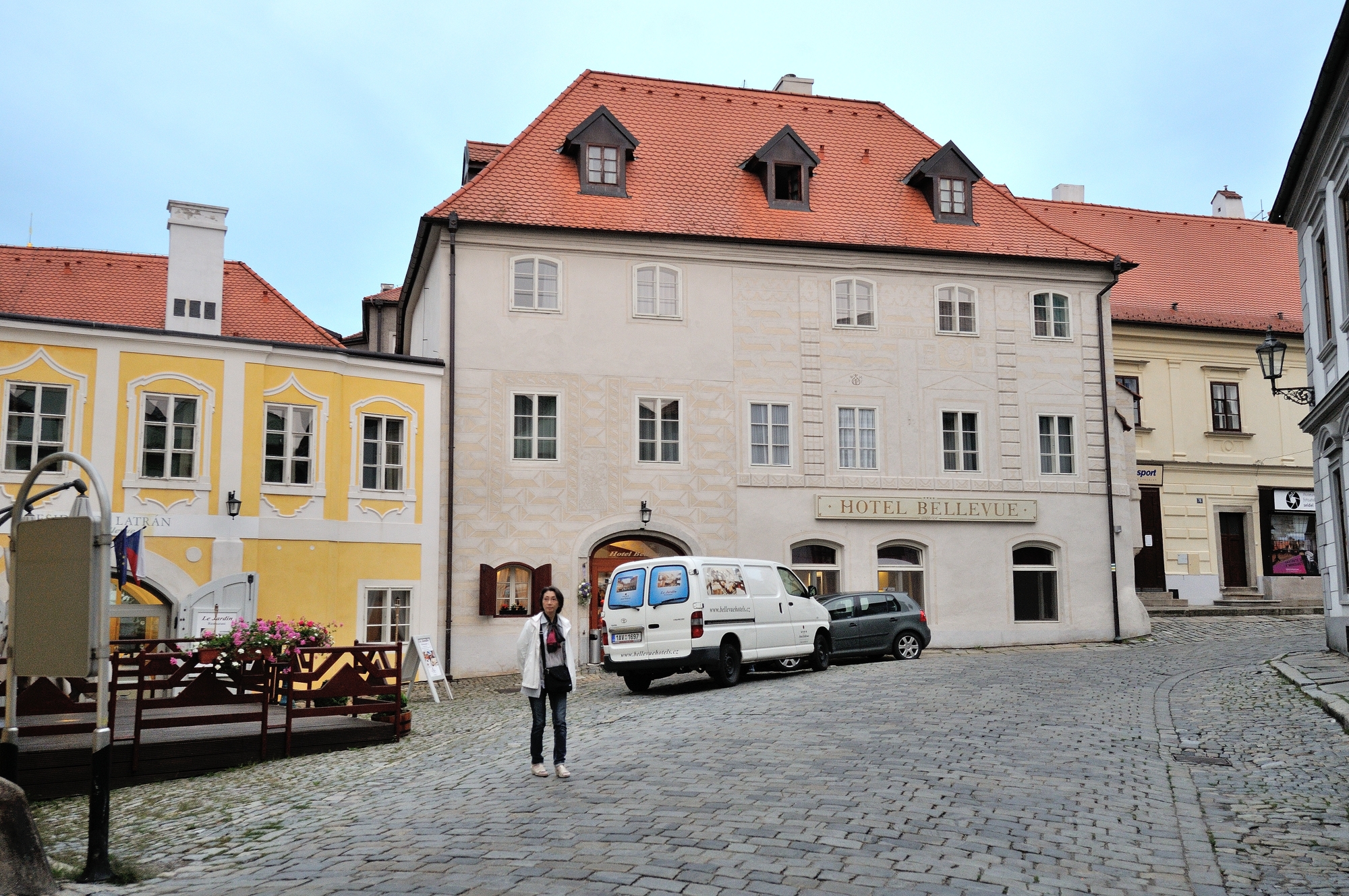 | ホテル ベルビュー [Hotel Bellevue] (20:47)「南方向」MAP 今日は、このホテルに宿泊。 明日はチェスキー・クルムロフ城 [Castle Český Krumlov] 内を見学し、午後プラハ [Praha] へ向かう。 |
