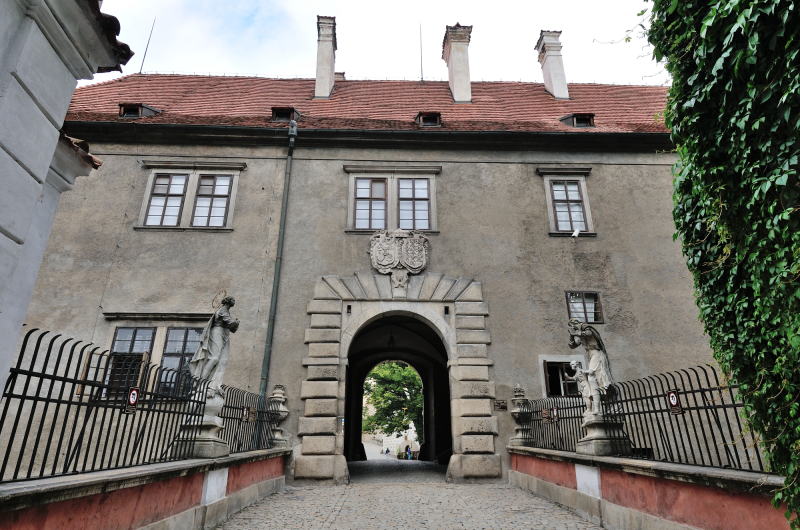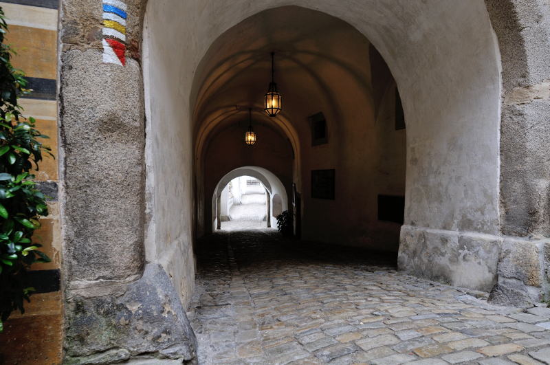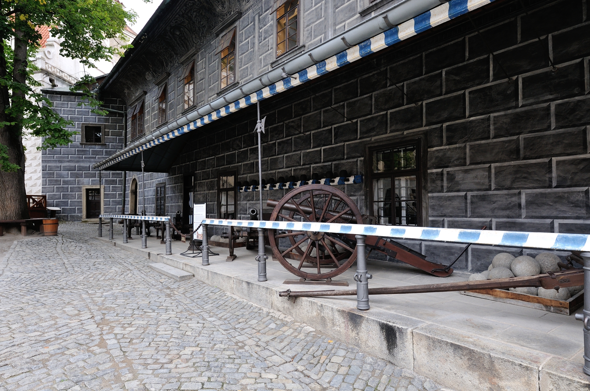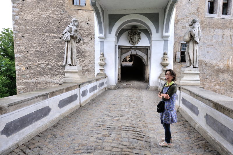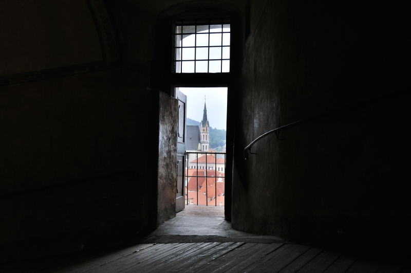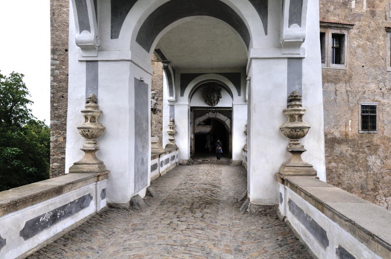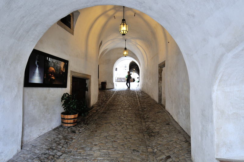 | かつて兵舎であった建物 (08:11)「北西方向」MAP 衛兵の組織はチェスキー・クルムロフで18世紀に結成され、彼らは単に城を守るのみではなく、要人がプラハやウィーンに赴くとき護衛としての役目も果たしていた。 また楽士でもあった彼らは、週末、町で演奏会を開き民衆を楽しませていた。 現在は城の図書館として使われている。 (第2の中庭) |