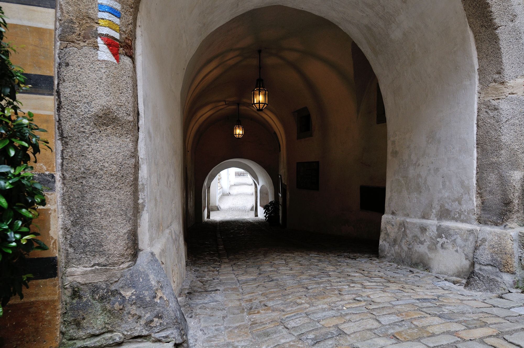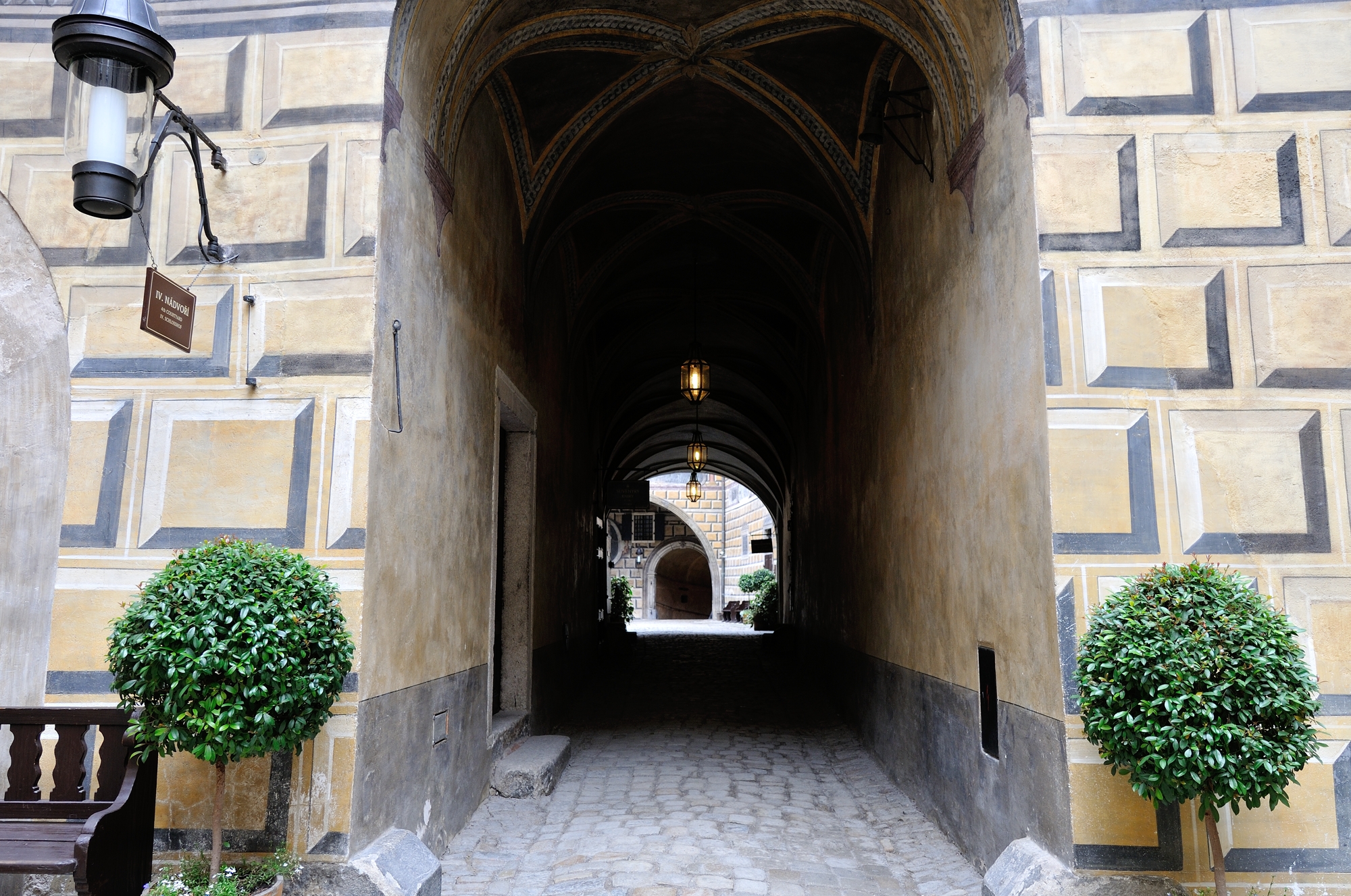 | チェスキー・クルムロフ城の第2の中庭への門 (07:44)「西方向」MAP |