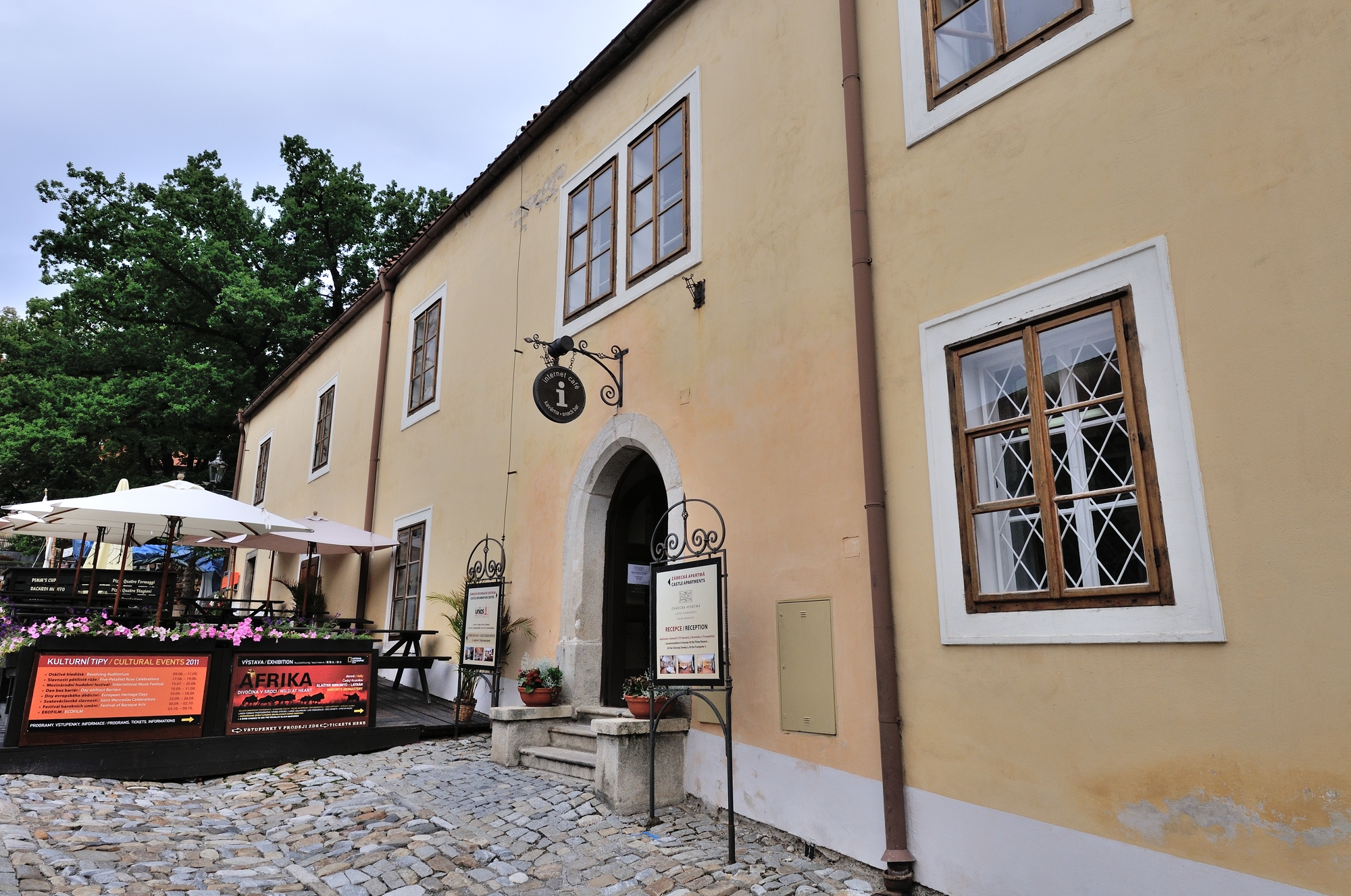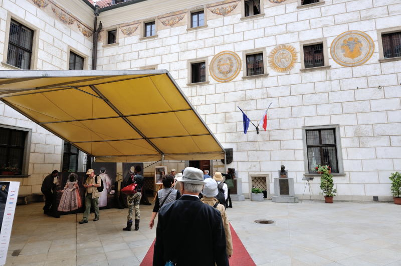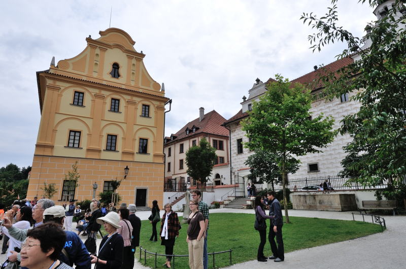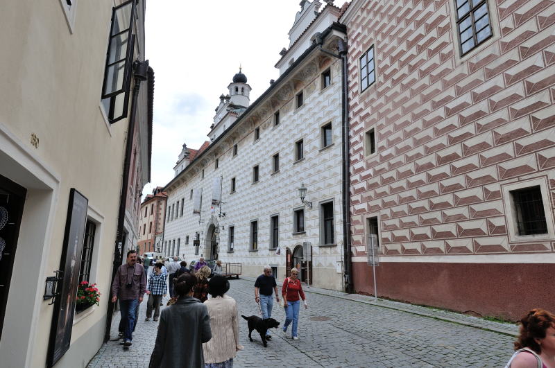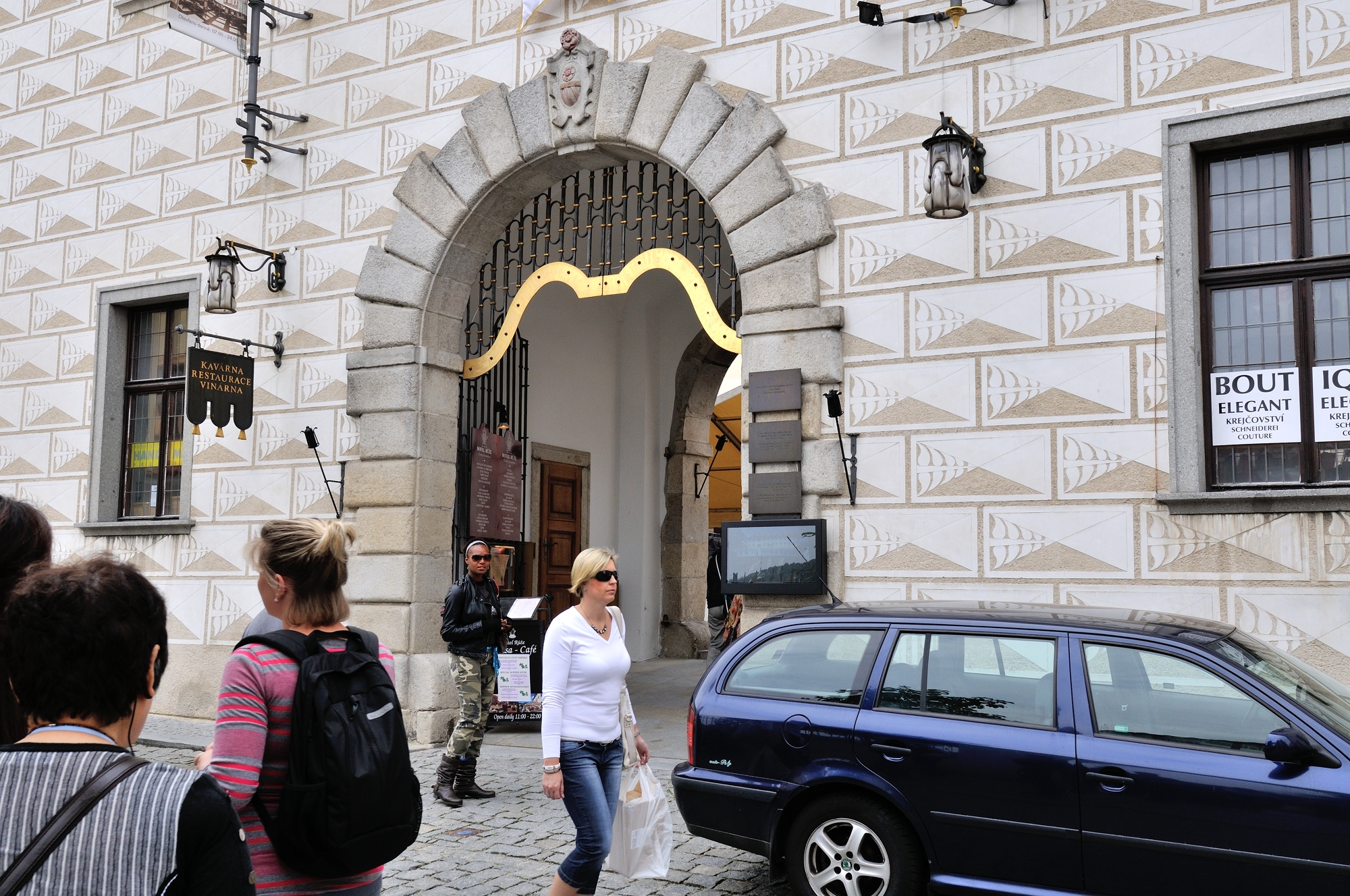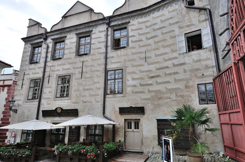 | かつて兵舎であった建物 (09:30)「北西方向」MAP 衛兵の組織はチェスキー・クルムロフで18世紀に結成され、彼らは単に城を守るのみではなく、要人がプラハやウィーンに赴くとき護衛としての役目も果たしていた。 また楽士でもあった彼らは、週末、町で演奏会を開き民衆を楽しませていた。 現在は城の図書館として使われている。 (第2の中庭) |