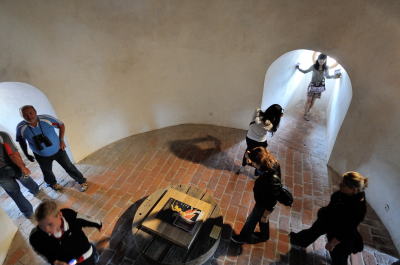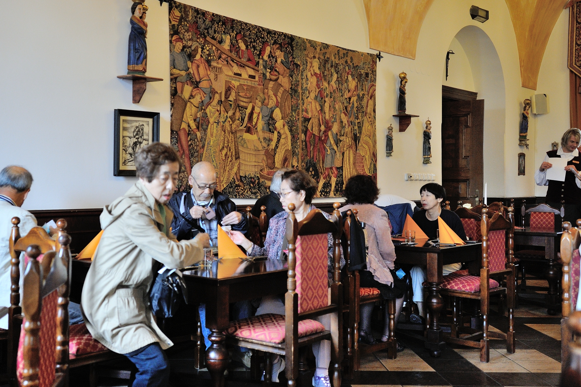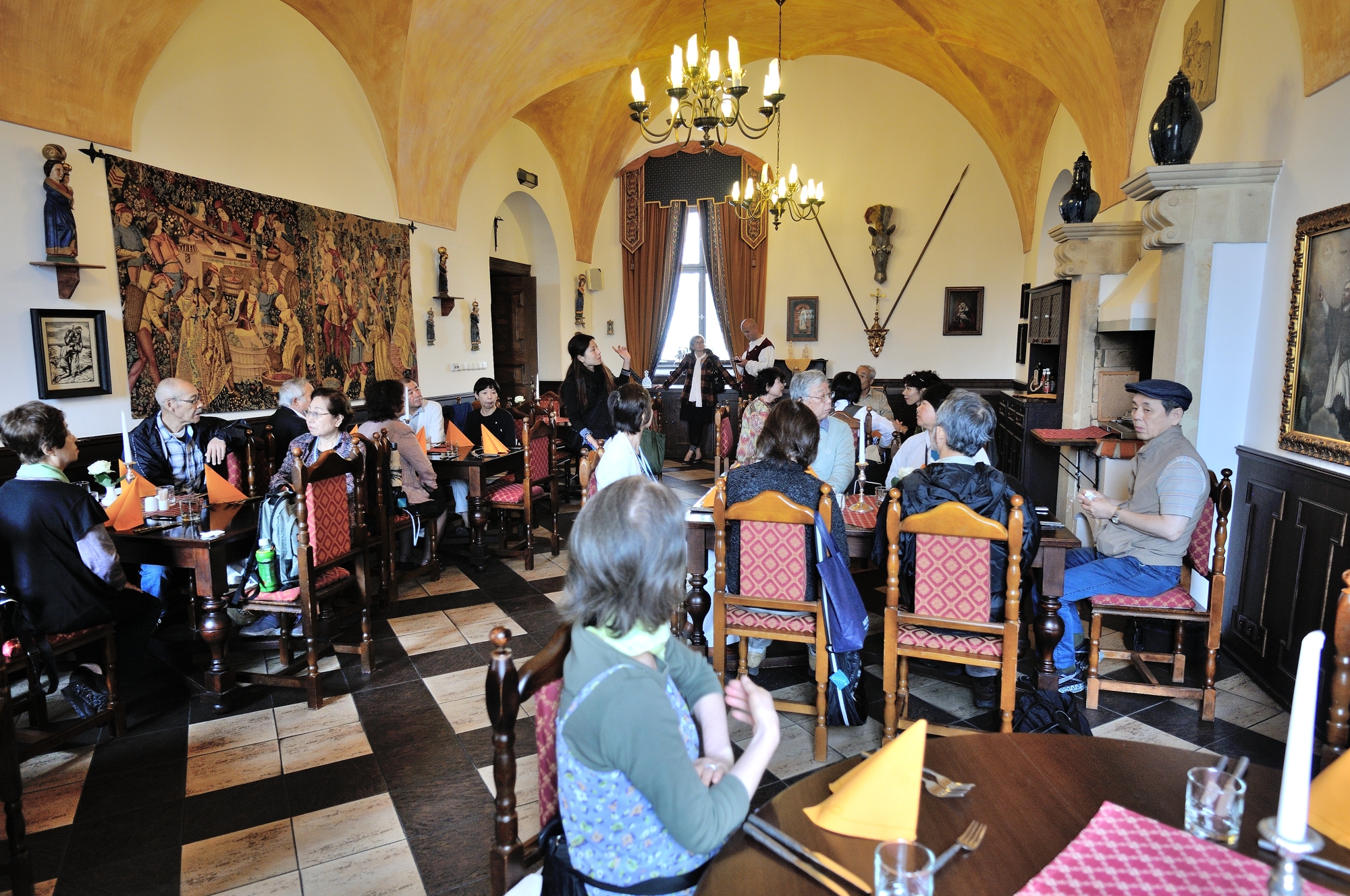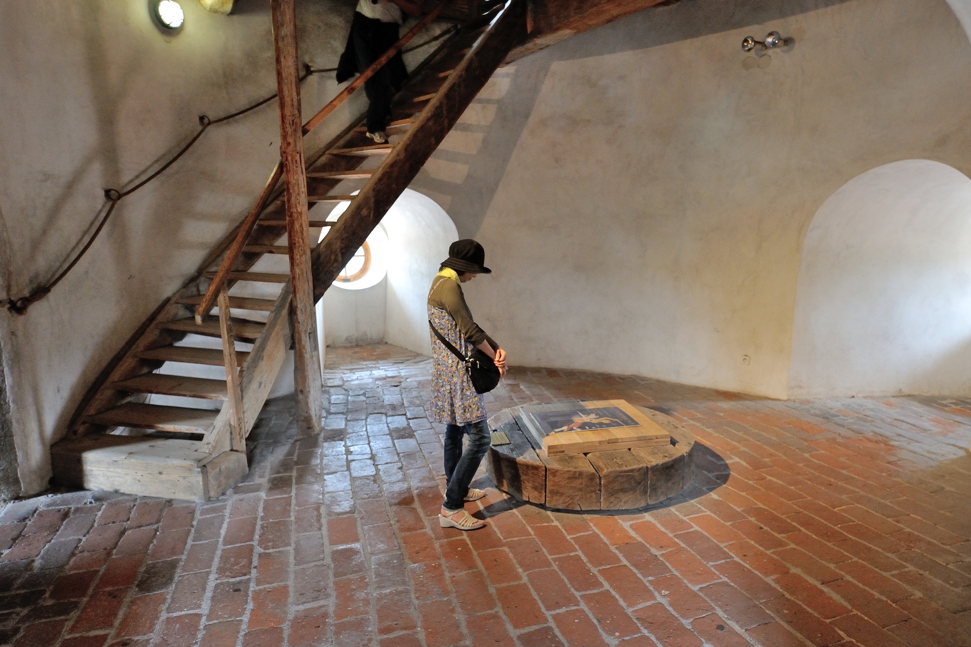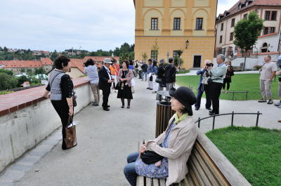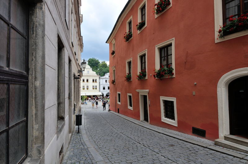 | かつて兵舎であった建物 (09:30)「北西方向」MAP 衛兵の組織はチェスキー・クルムロフで18世紀に結成され、彼らは単に城を守るのみではなく、要人がプラハやウィーンに赴くとき護衛としての役目も果たしていた。 また楽士でもあった彼らは、週末、町で演奏会を開き民衆を楽しませていた。 現在は城の図書館として使われている。 (第2の中庭) |