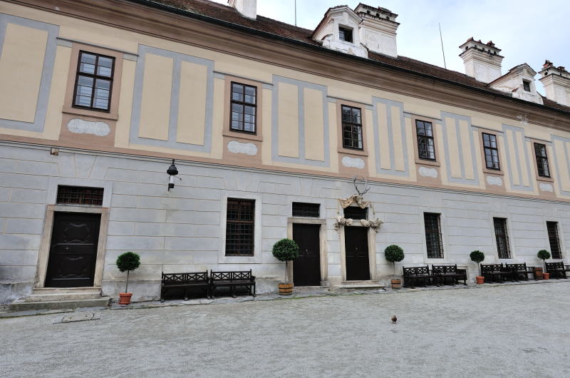 | かつて造幣局であった建物 (09:30)「西南西方向」MAP シュヴァルツェンベルク家 [Schwarzenberku] の時代 (18世紀~19世紀)には、ここで硬貨が造られていた。 現在は切符売り場として使われている。 (第2の中庭) |