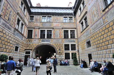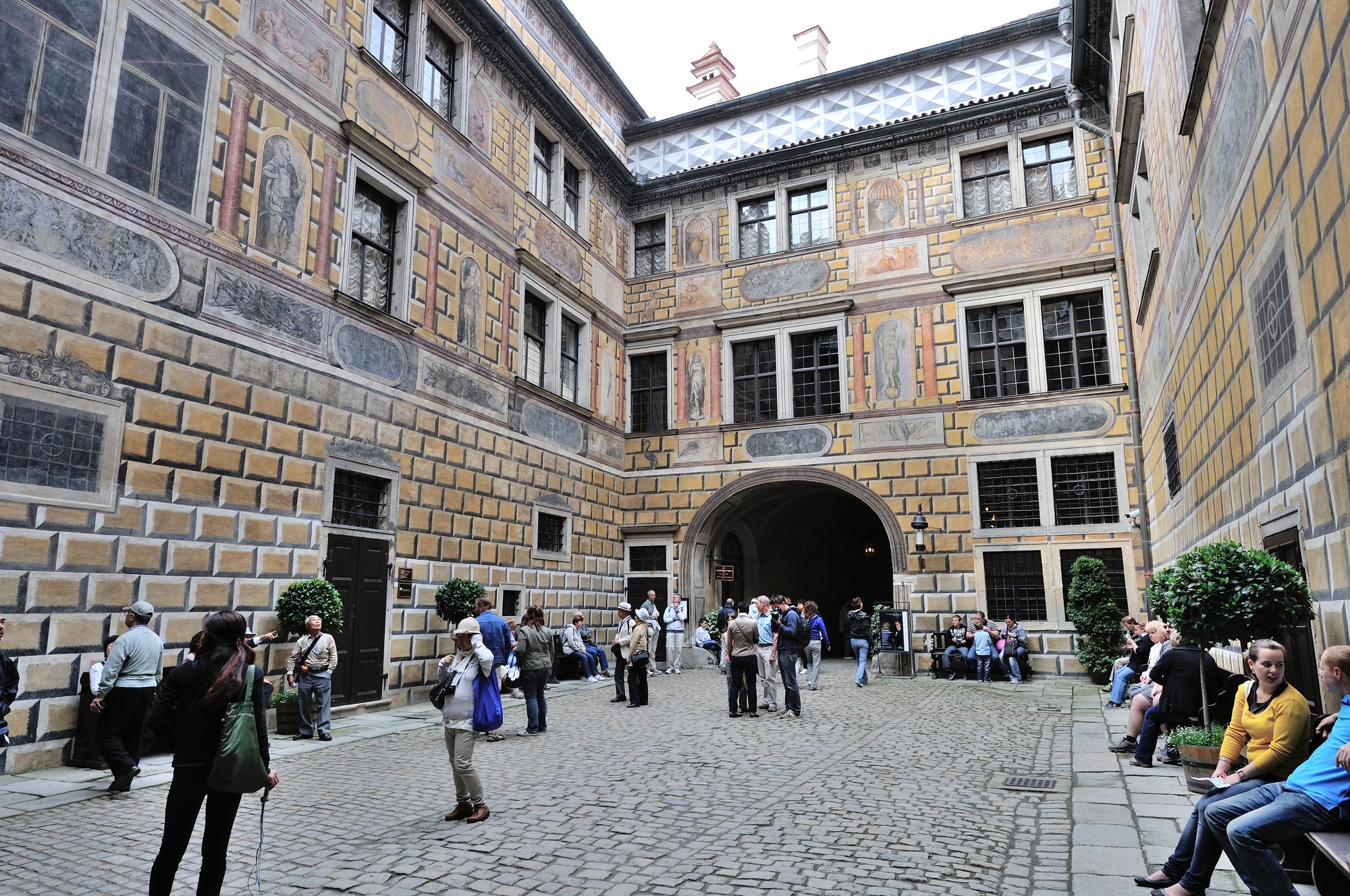 | チェスキー・クルムロフ城 [Castle Český Krumlov] (13:15)「北西方向」MAP チェスキー・クルムロフ城には5つの中庭があり、ここは第2の中庭。 |