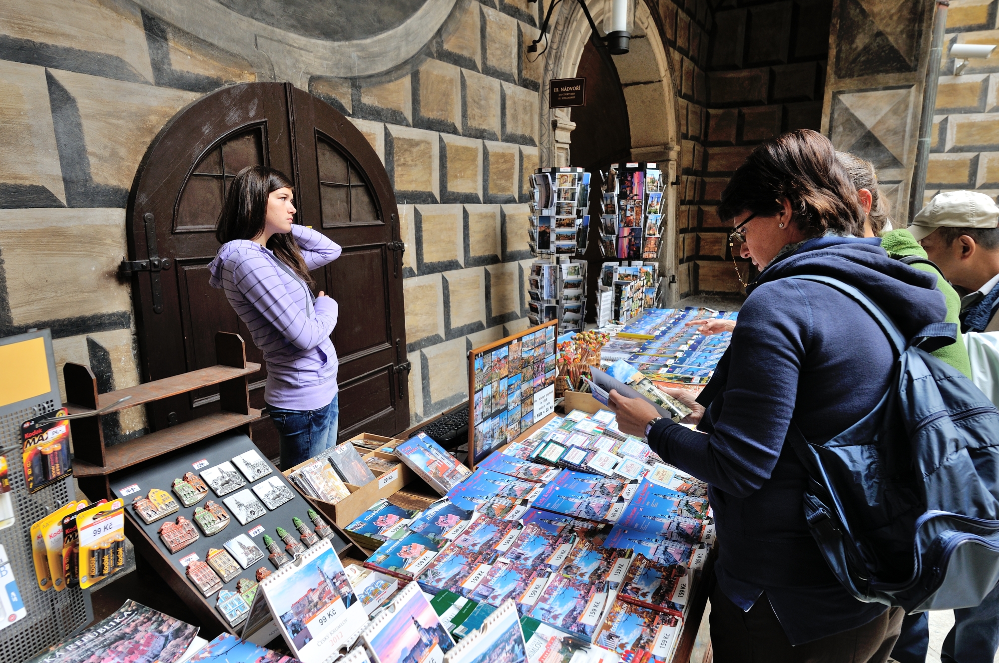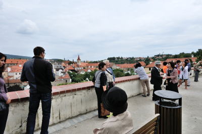 | 塔への入場料は50チェコ・コルナ [Koruna česká] (13:40)「南東方向」MAP 原則として、官営の建物などへの入場料は、その国の通貨だけしか通用しないので注意が必要。 |