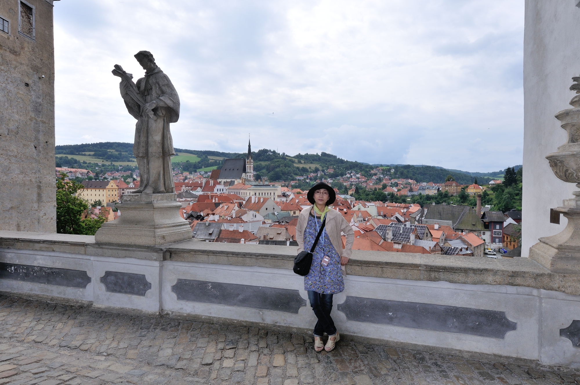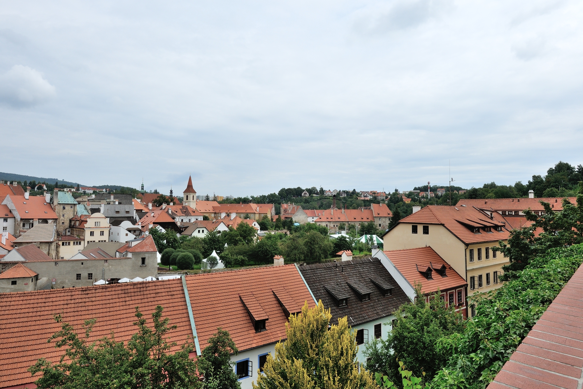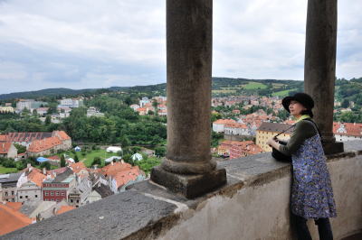 | 城内のテラスからの眺め (10:22)「南東方向」MAP チェスキー・クルムロフ [Český Krumlov] の町並み。 |