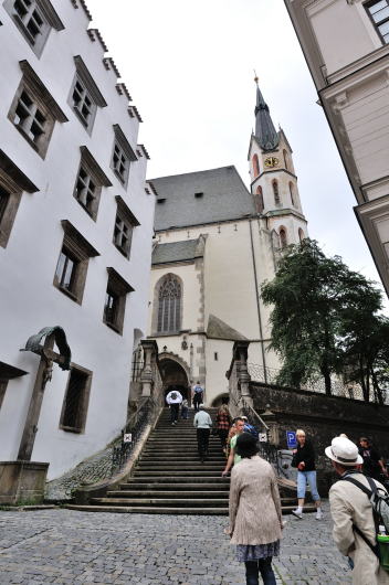 | 聖ヴィート教会 [St.Vitus Church] (11:32)「南方向」MAP ゴシック時代 (13~16世紀) に建てられた教会で、聖ヴィートは悪い病気 (ペスト) から人々を守る聖人。 この教会にはローゼンベルクと3番目の妻が葬られている。 (ローゼンベルクには4人の妻がいた) |