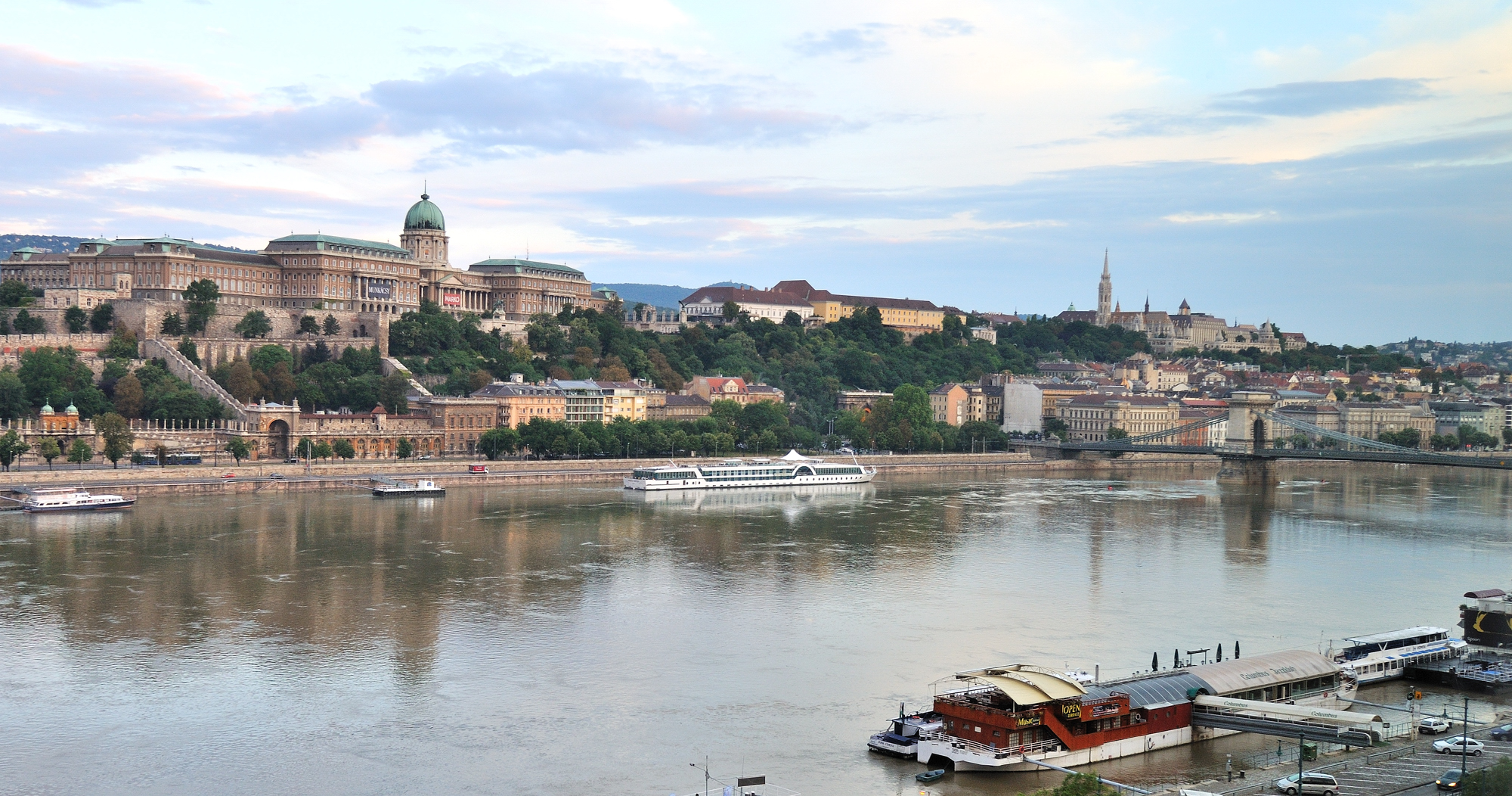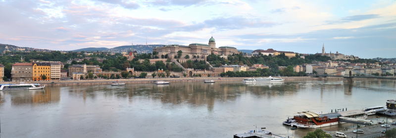 | セーチェーニ鎖橋 [Széchenyi Lánchíd] から王宮を望む (07:30)「南西方向」MAP |
