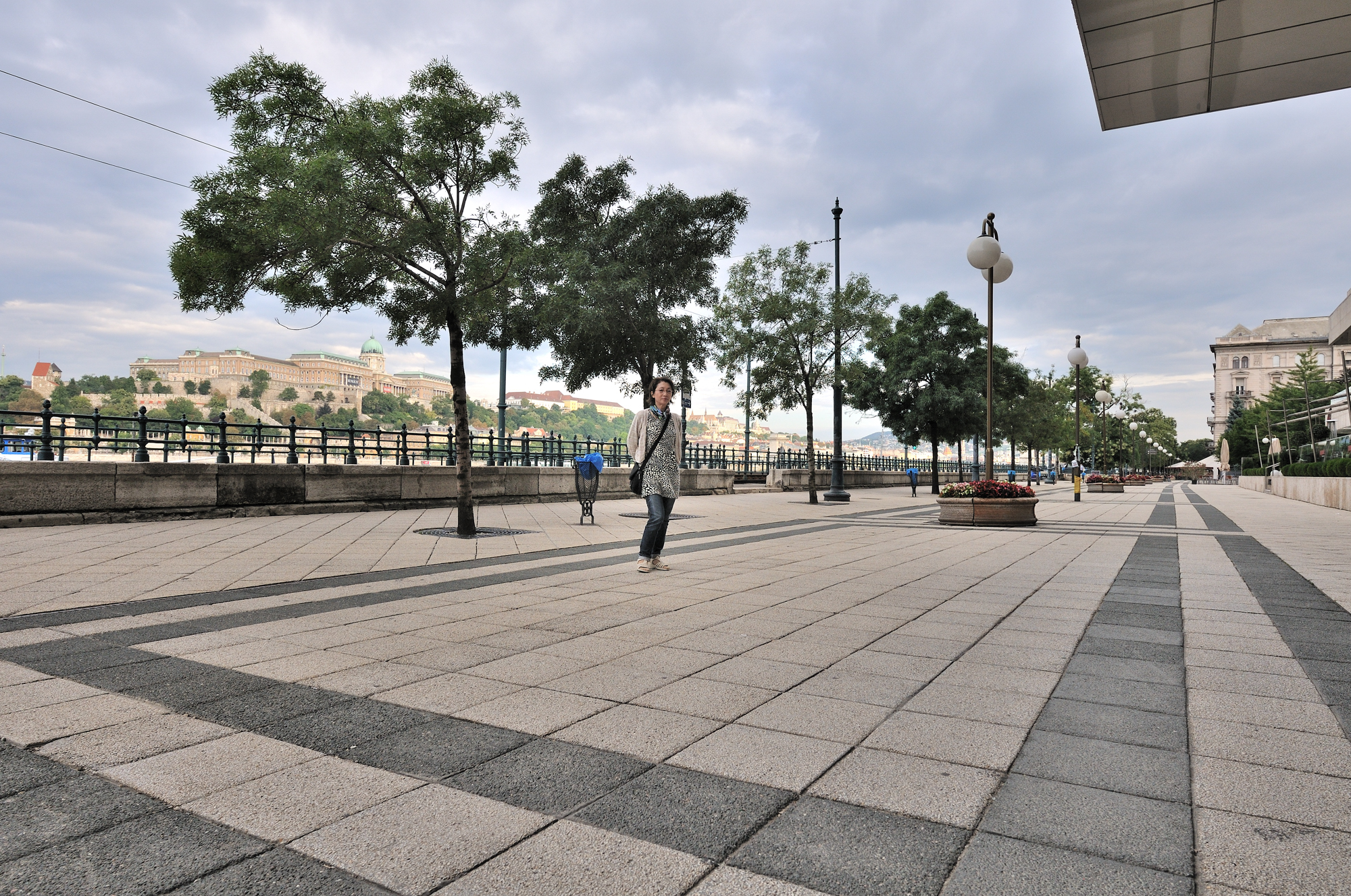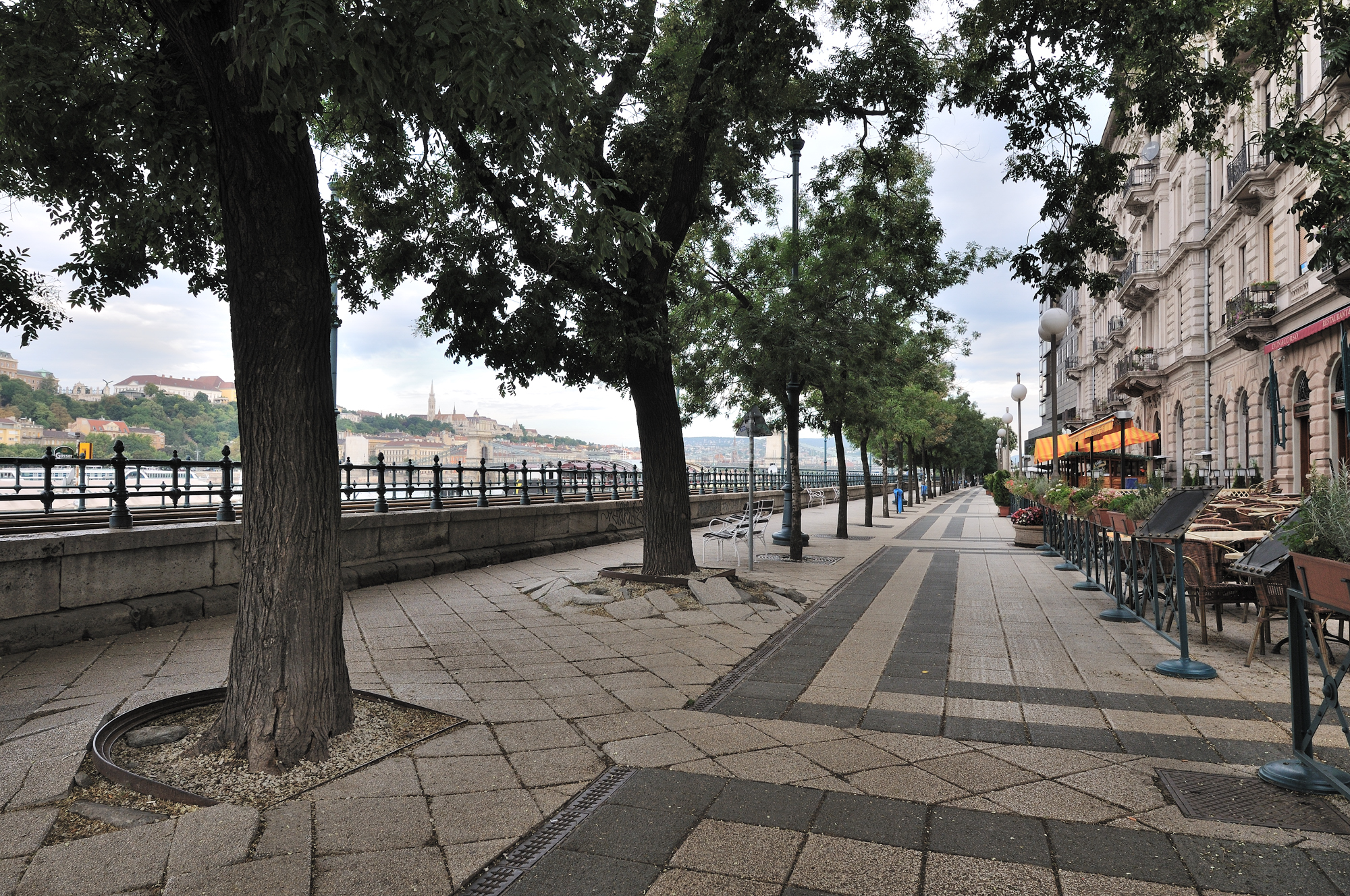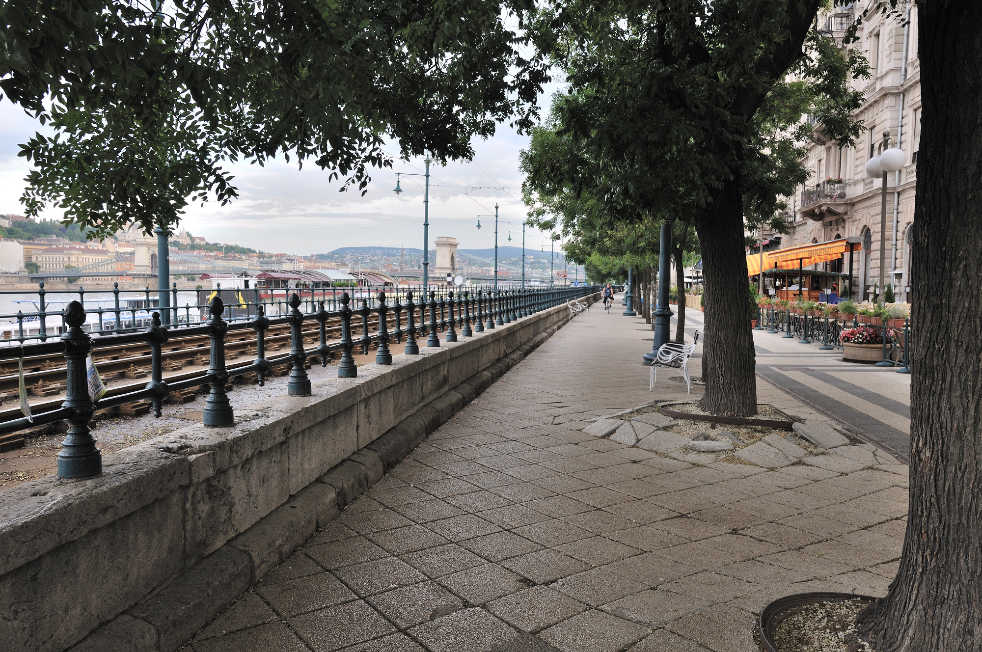 | ドナウ・コルゾー (遊歩道) [Duna Korzó] (07:08)「南東方向」MAP 中央に見える建物が、マリオット・ブダペスト・ホテル [Mariott Budapest Hotel]。 映画、特にハリウッド映画ではマリオットホテル近辺から "くさり橋" にかけて頻繁に撮影が行われている。 理由として、アメリカのハリウッド界で活躍されている方々の中で、パラマウント映画の創始者 アドルフ・ズーカー [Adolph Zukor] がハンガリー人であることや、有名な男優、女優 、その他様々な映画関係者の中にはハンガリーの血が流れている方が多いことが挙げられる。 |