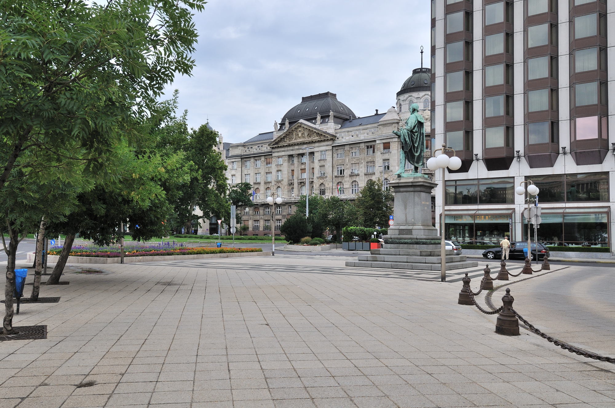 | 広場の名前について この広場に「ルーズベルト」の名がつけられたのは、1947 年のことで、第二次世界大戦中、連合国軍を率いてブダペストとハンガリーをナチスの占領から解放しようと尽力したフランクリン・デラーノ・ルーズベルトに敬意を表し、名付けられていたが、 2011 年に名称変更され、正式にセーチェニ イシュトヴァーン広場と命名されている。 この新しくも、由緒ある名前は、広場と隣接するハンガリー科学アカデミーを創設するために、1825 年に自身の 1 年分の収入を寄付したセーチェニ・イシュトヴァーン伯爵を称えて付けられた。 また鎖橋建設の計画を立ち上げたのも、イシュトヴァーン伯爵で、広場には 1880 年に作られた伯爵の像が立っている。 18世紀の初めには、広場は、Ácstér (庭園) として知られており、1847年には、Lánchíd tér (鎖橋広場) 、その後には、Unloadingtér (荷降ろし広場 )またはRakpiac (市場) として知られ、世紀の終わりにはFerencJózseftér (フェレンツヨーゼフ広場) として知られていた。 1918年10月には、 "10月29日広場" と呼ばれ、再び1919年から1946年の間は、フェレンツヨーゼフ広場と呼ばれた。 その後、2011年5月5日までは、ルーズベルト広場と呼ばれていたが、同日、セーチェニ イシュトヴァーン広場と正式に改名された。 写真中央の銅像は、 Ferenc Deak de Kehida (1803-1876) の銅像で、広場の名前とは直接関係はありません。 |