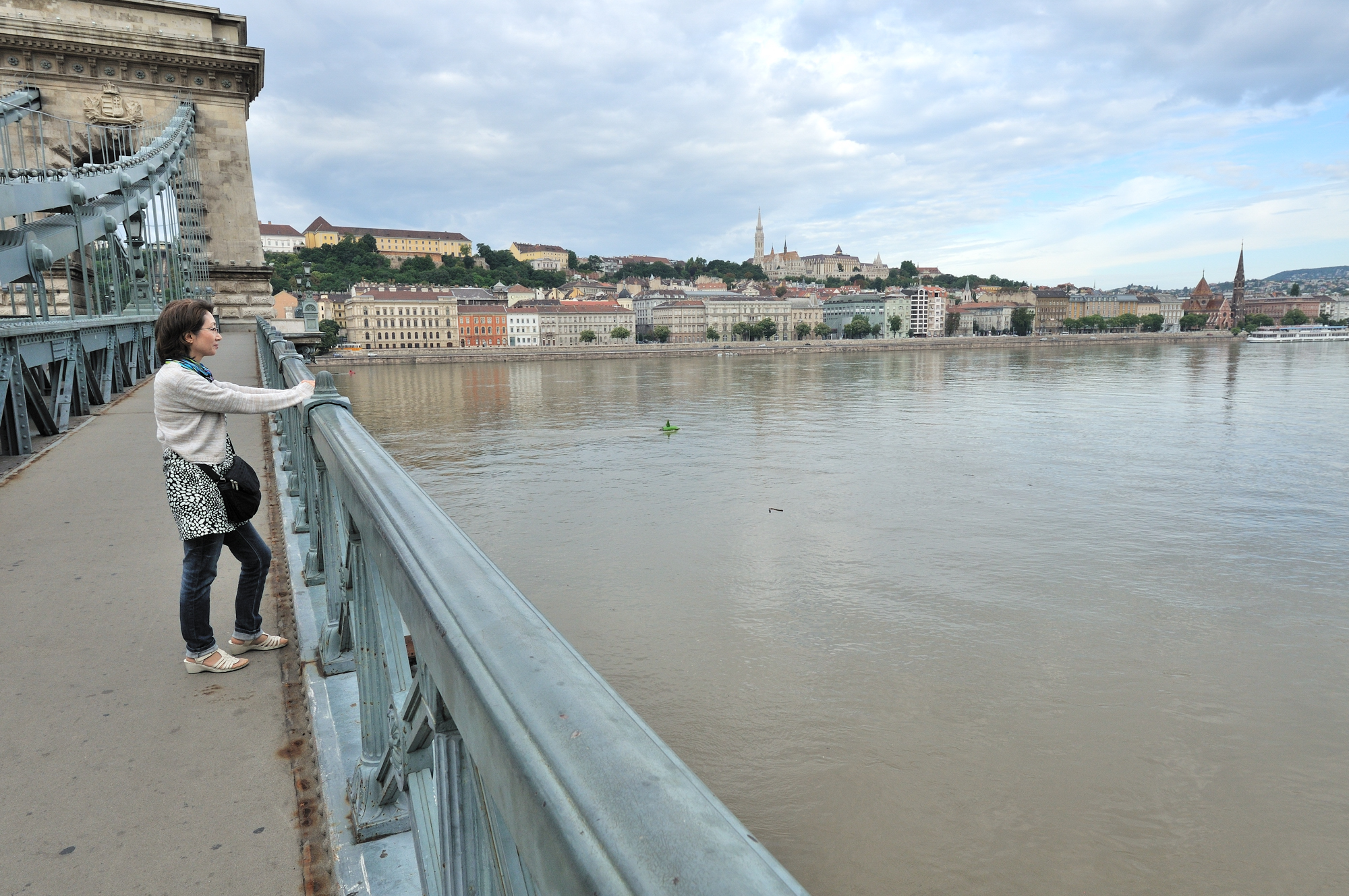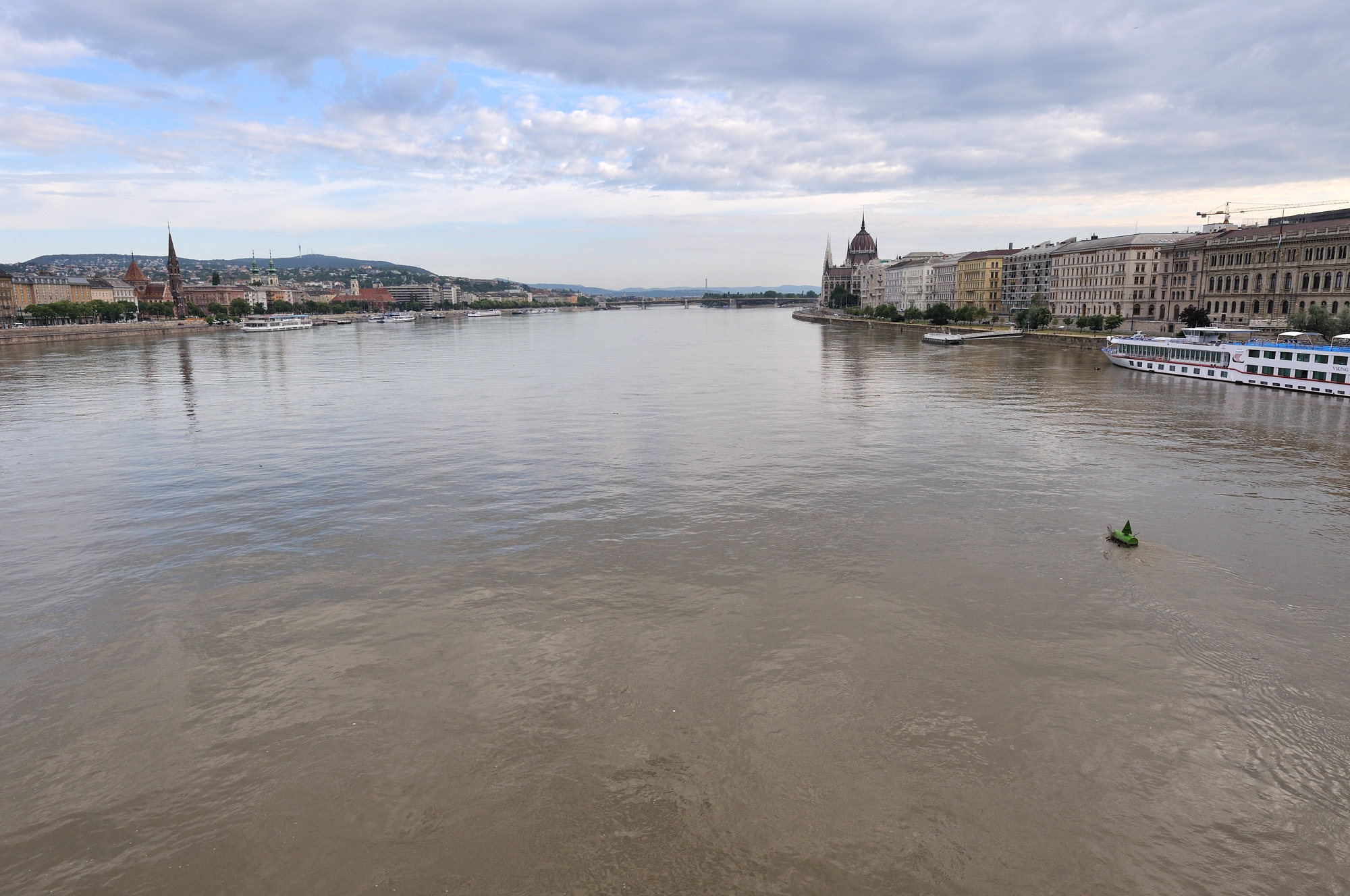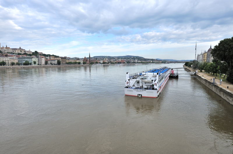 | くさり橋 [Széchenyi Lánchíd] からドナウ川の上流方向 (北方) を望む (07:29)「北方向」MAP |