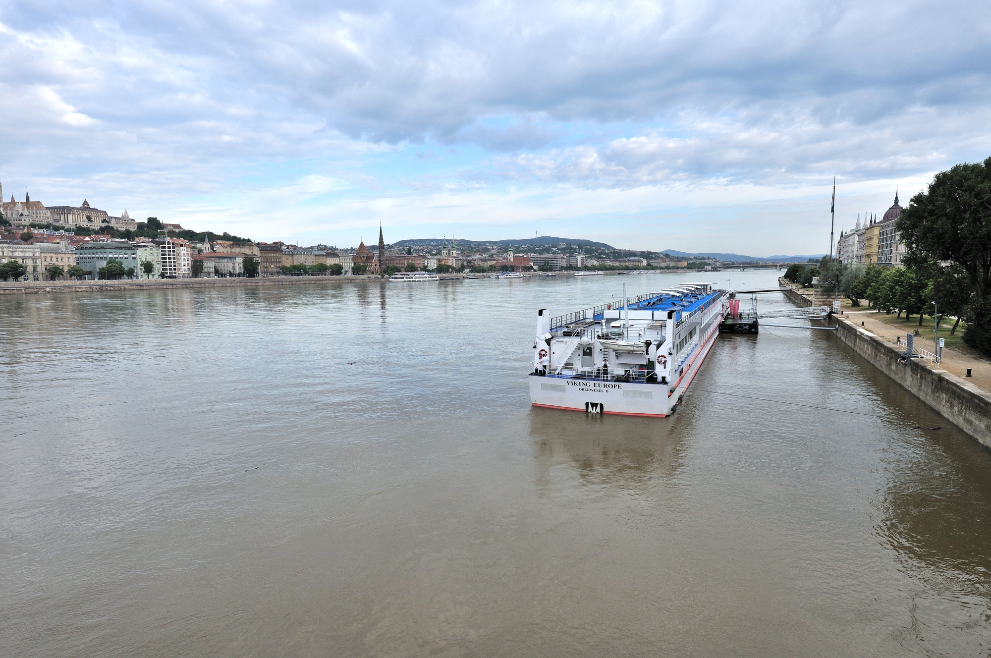| くさり橋 [Széchenyi Lánchíd] からドナウ川の上流方向 (北方) を望む (07:28)「北方向」MAP |
