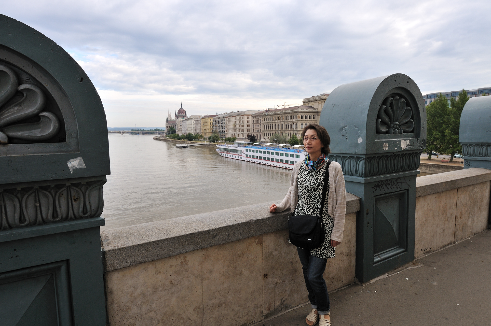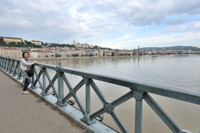 くさり橋 (07:40)「東北東方向」MAP ブダ側からペスト(ペシュト)側を望む。 |