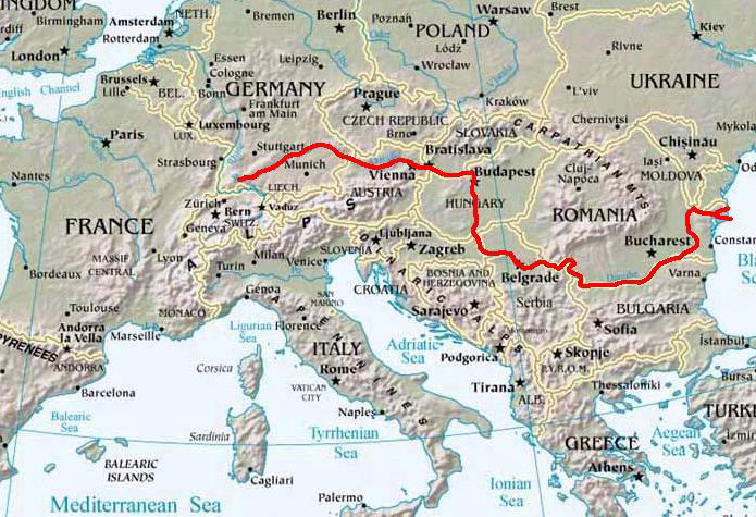 | ドナウ川 [Duna] は、ドイツ南部バーデン=ヴュルテンベルク州の森林地帯「シュヴァルツヴァルト(黒い森)」に端を発し、概ね東から南東方向に流れ、東欧各国を含む10ヶ国を通って黒海に注ぐ重要な国際河川である。河口にはドナウ・デルタが広がる。全長は2,850 km | |