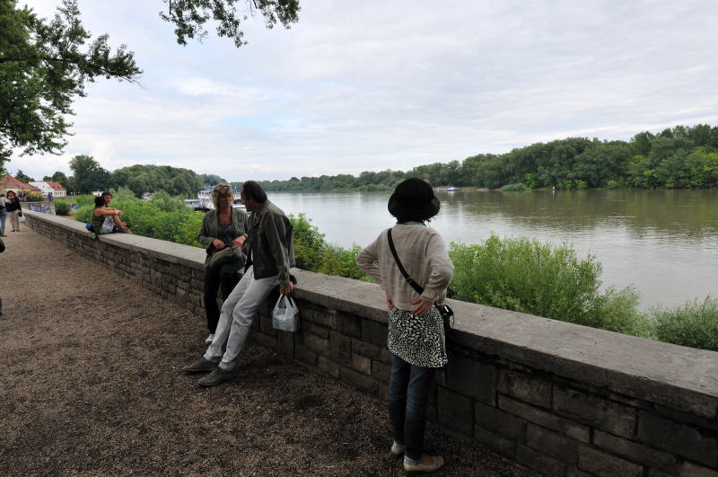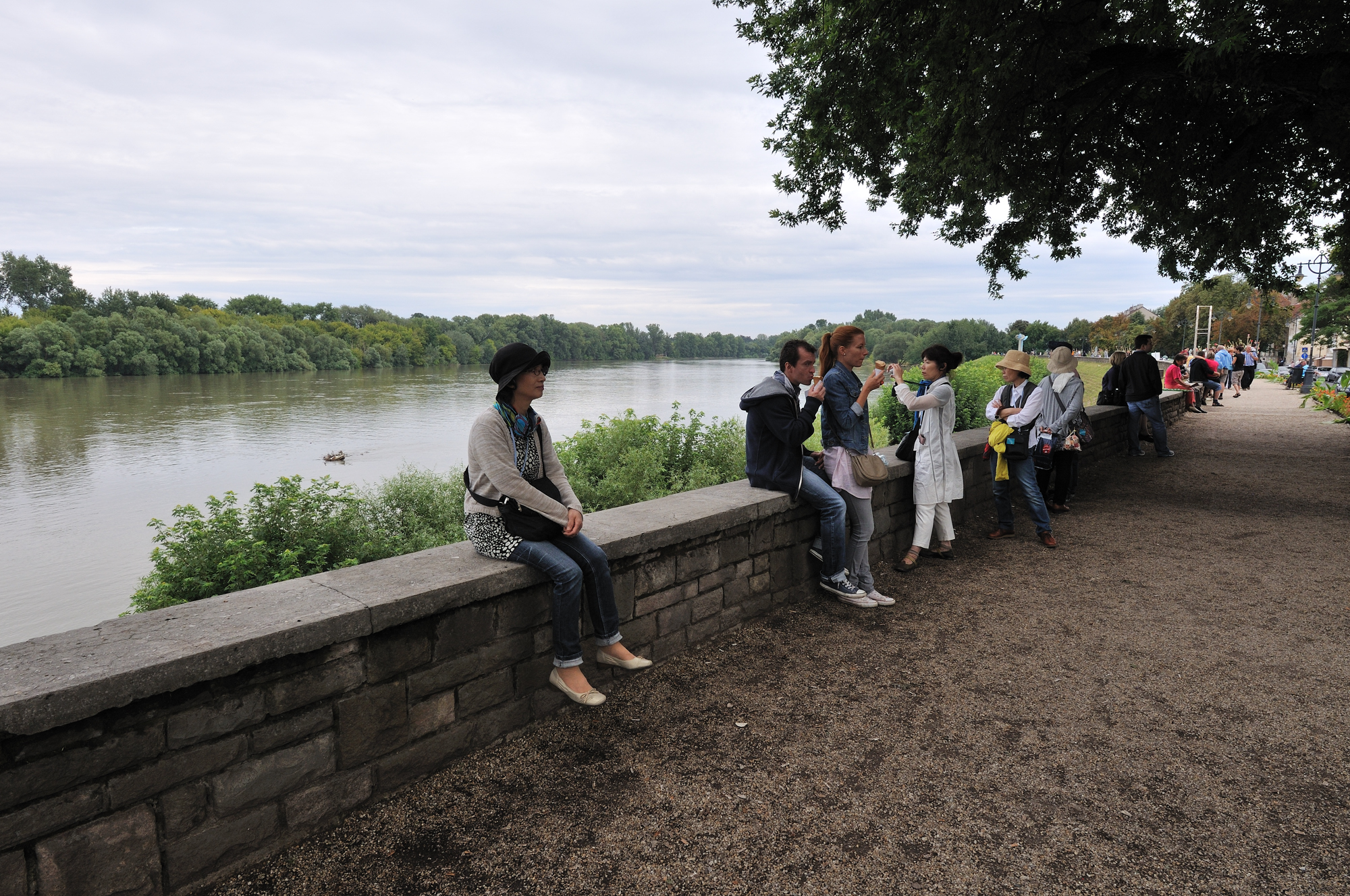 | ドナウ川の川縁 (16:28)「南東方向」MAP センテンドレの町に沿って流れるドナウ川。 このあたりのドナウ川はセンテンドレ島 [Szentendrei-sziget] によって二つに分けられているため、川幅が狭くなっている。 川向こうの森はセンテンドレ島。 |