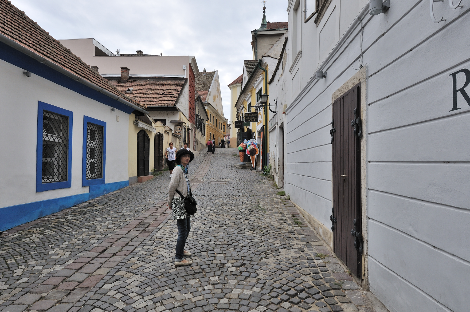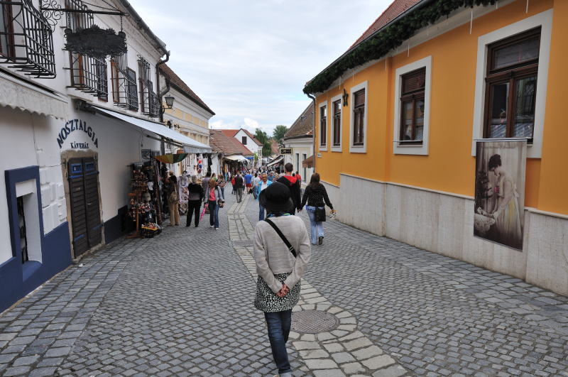 | ヴォダニ通り[Bogdányi utca] (16:43)「北東方向」MAP 店やカフェが並ぶ旧市街地、単なる民家が人が訪れるにつれ観光化された。 |