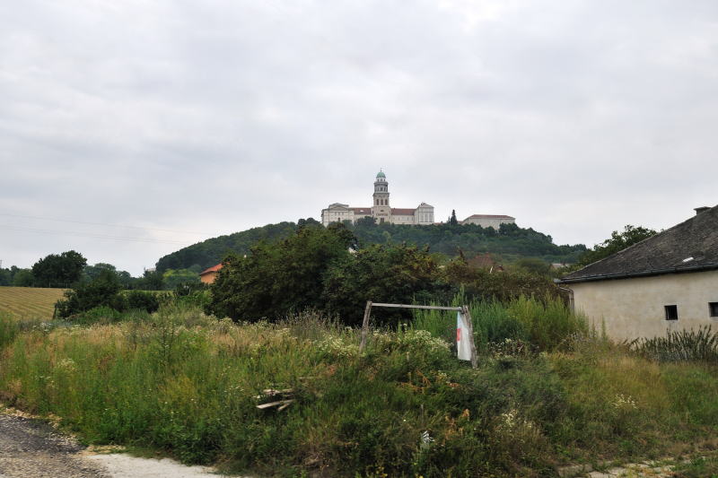 | 左の白っぽい建物は修道院の敷地内にある全寮制男子校 (10:52)「西南西方向」MAP 修道院付属の学校となれば宗教的教育が中心と思われがちだが、実際の教育内容は一般校と変わらないとのこと。 パンノンハルマ修道院はハンガリーで初めてギムナジウム [Gymnasium] (大学進学準備学校) が設置された場所である。 |