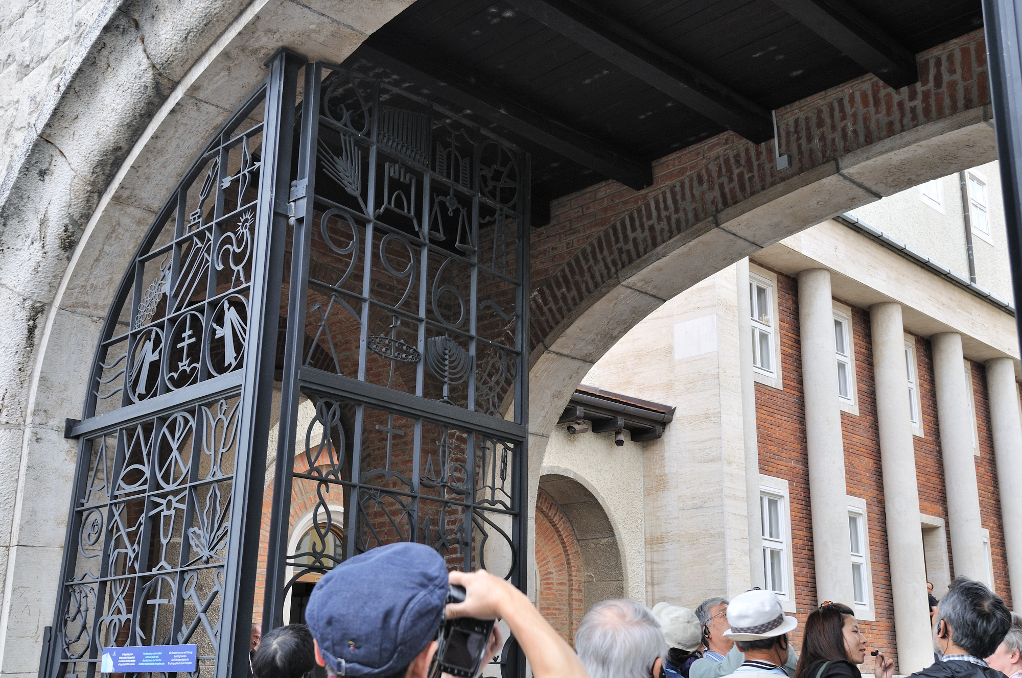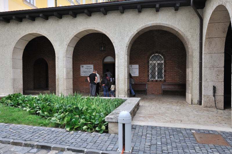 | 左の白いプレートに記されている人物名 (10:51)「北北西方向」MAP 名前は、フリードリッヒ・ボルン [Friedrich Born] (スイス赤十字国際委員会ブダペスト代表)。 1944年5月~1945年1月、何千人ものユダヤ人に赤十字社の保護状を発行し、ユダヤ人を収容所や死の行進から救った。 またユダヤ人4,000人に労働許可証を与え、国外追放を防いだ。 60以上のユダヤ系施設を赤十字社の保護下に置き、7,000人以上のユダヤ人の子供達を保護した。 この人道的行為によって1万1千人から1万5千人ものユダヤ人の命が救われた。 この修道院は、第二次世界大戦時には国際的に保護され、爆撃対象から外されていた。 そのため多くの人々の避難場所になっていた。 ちなみに、多くのユダヤ人を救った日本人として "杉原 千畝 (すぎはら ちうね)" 氏が世界的に知られている。 |