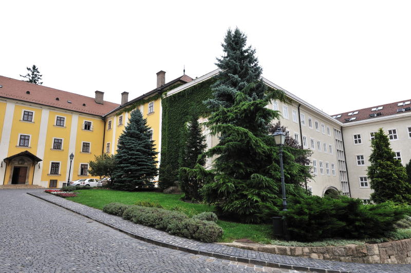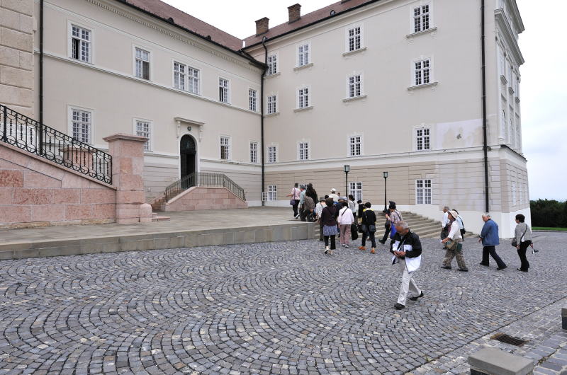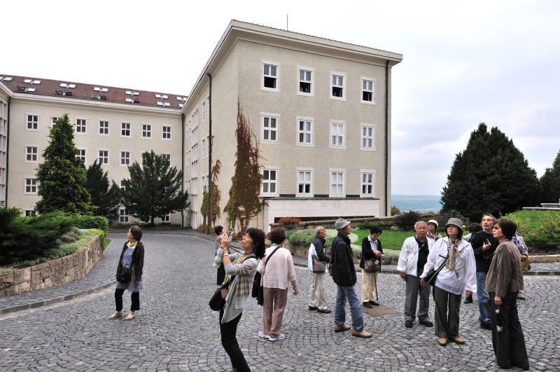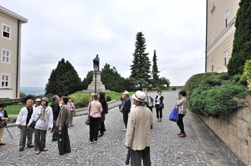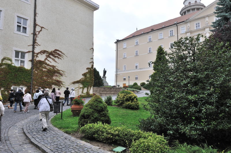 | 前方の建物は修道院の敷地内にある全寮制男子校 (10:55)「南南東方向」MAP 修道院付属の学校となれば宗教的教育が中心と思われがちだが、実際の教育内容は一般校と変わらないとのこと。 パンノンハルマ修道院はハンガリーで初めてギムナジウム [Gymnasium] (大学進学準備学校) が設置された場所。 |
