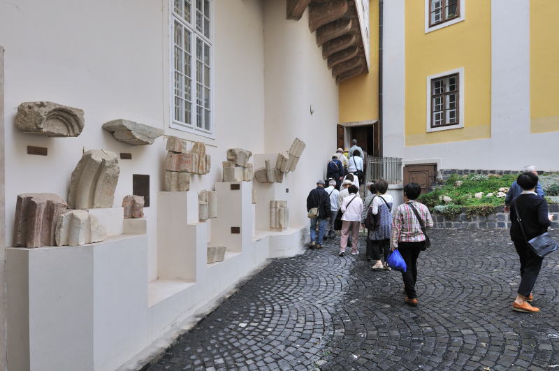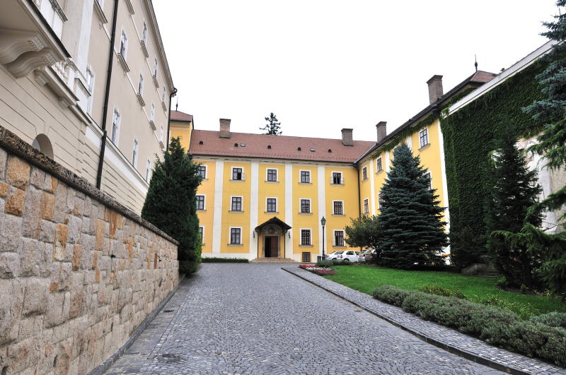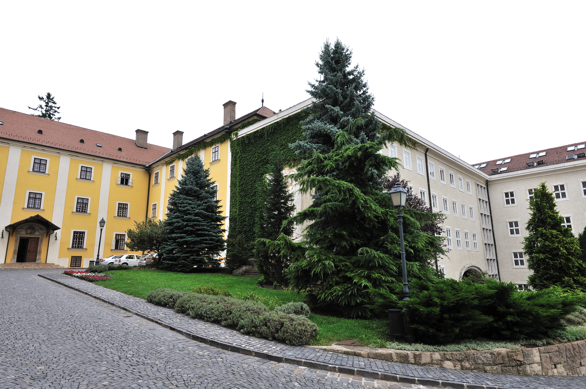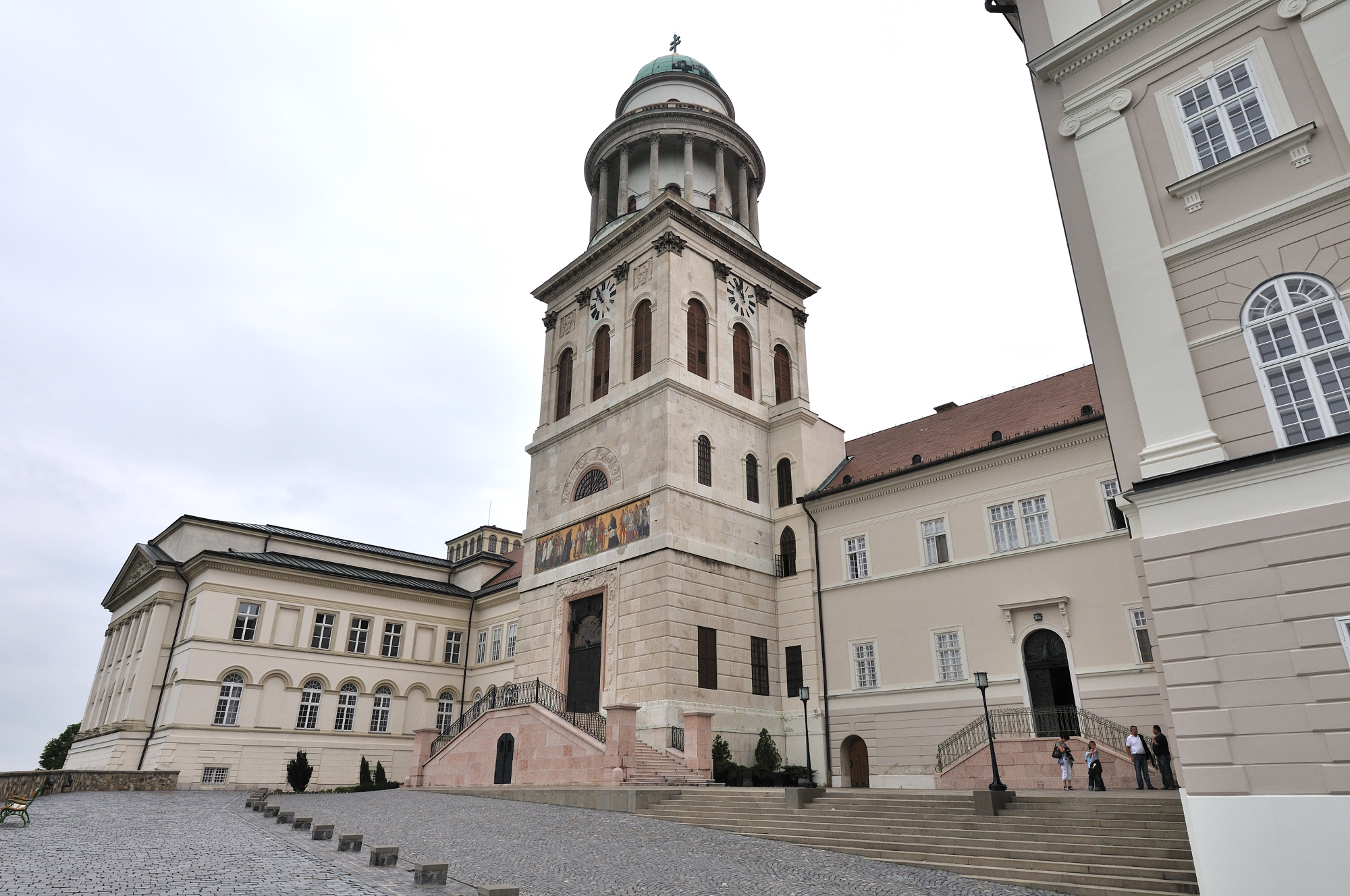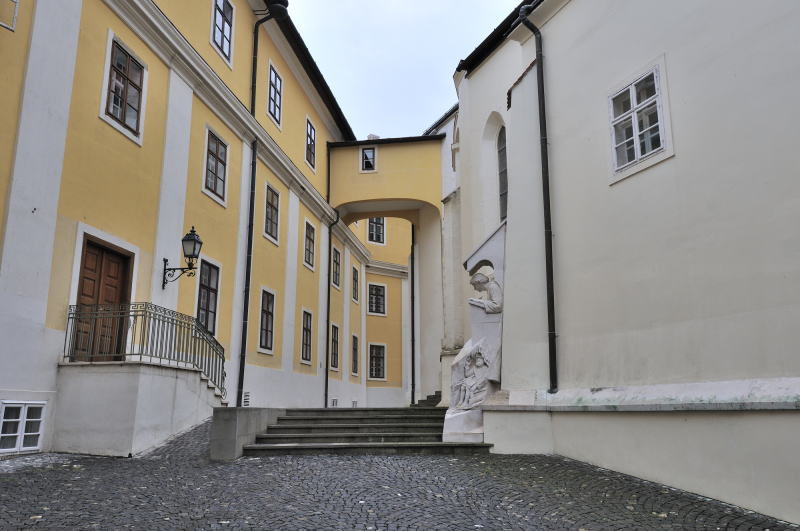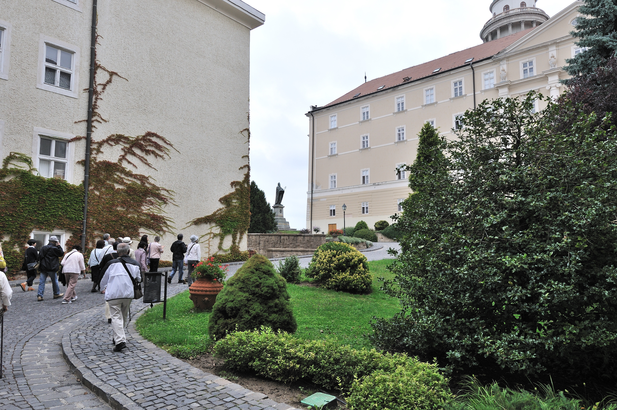 | バロック様式の修道院建物 (10:55)「東方向」MAP 1002年にハンガリーの初代国王であるイシュトヴァーンによって修道院の設立が正式に認められ、ハンガリーで最初のキリスト教の修道院になった。 その後キリスト教を布教するためにいろいろな活動を進めていたが、1526年のオスマントルコ軍団による襲撃で、この地もオスマントルコの支配下に納められてしまう。 オスマントルコはイスラム教徒であることから修道院の活動は禁止され、また多くの建物も破壊された。 オスマントルコによる支配は約150年にわたり続いたが、そのご支配力は徐々に低下し、最終的にオスマントルコによる支配から逃れられたのは18世紀に入ってからである。 18世紀には破壊された建物の修復や改築が大々的に行われ、この黄色のバロック様式の建物はそのとき増改築されたものである。 この建物は、修道士の人達が生活している建物で、現在約40人の修道士たちが生活している。 多くある仕事の中で修道士にとって最も大切なものは、教鞭を執ること、つまり教師になることで、宗教的な知識のみではなく、物理、数学、国語、第二外国語など多岐にわたる知識が必要とされている。 |