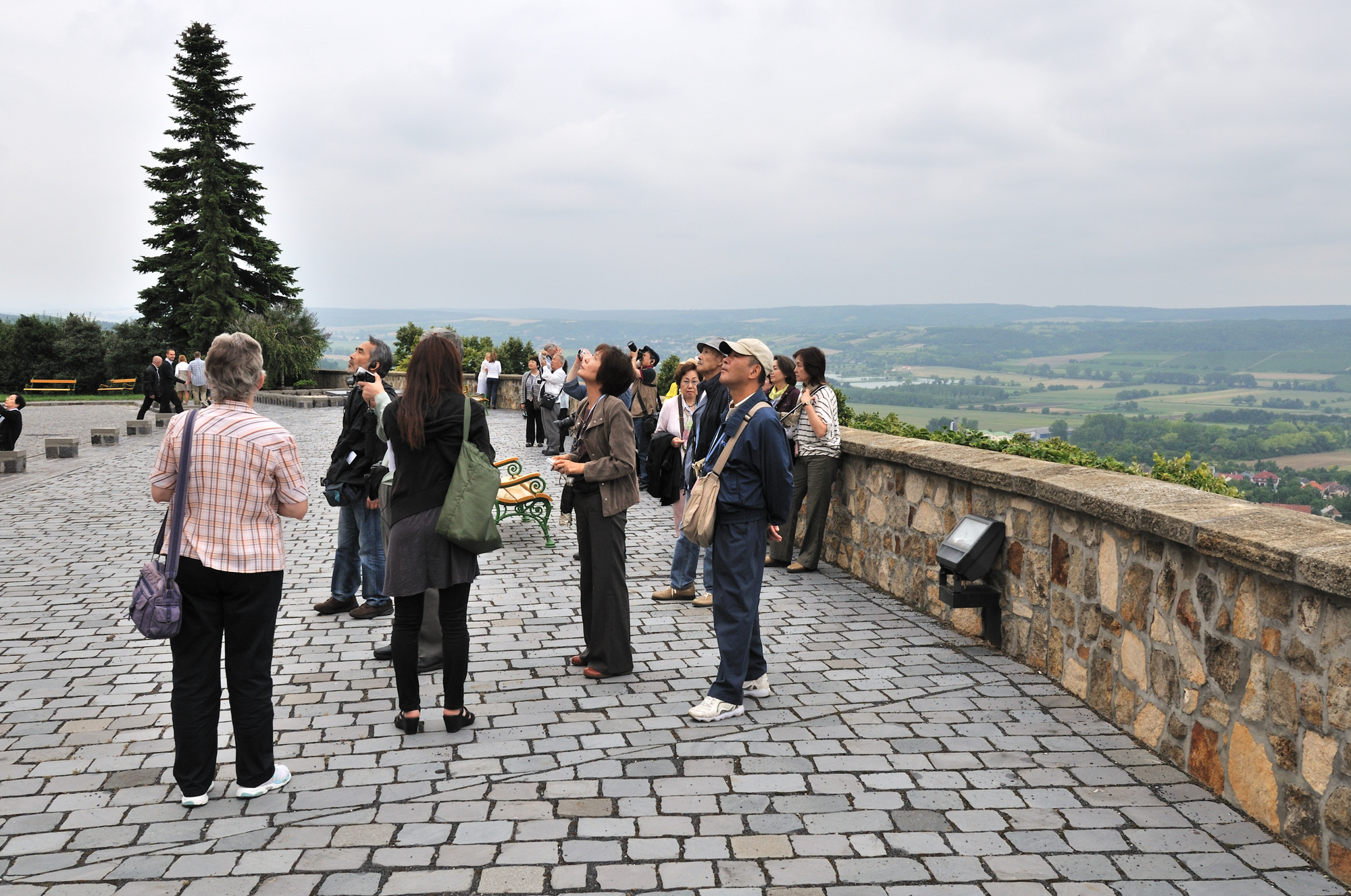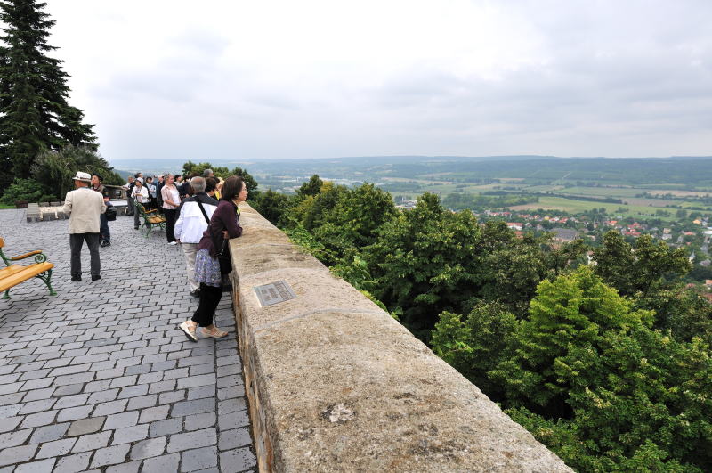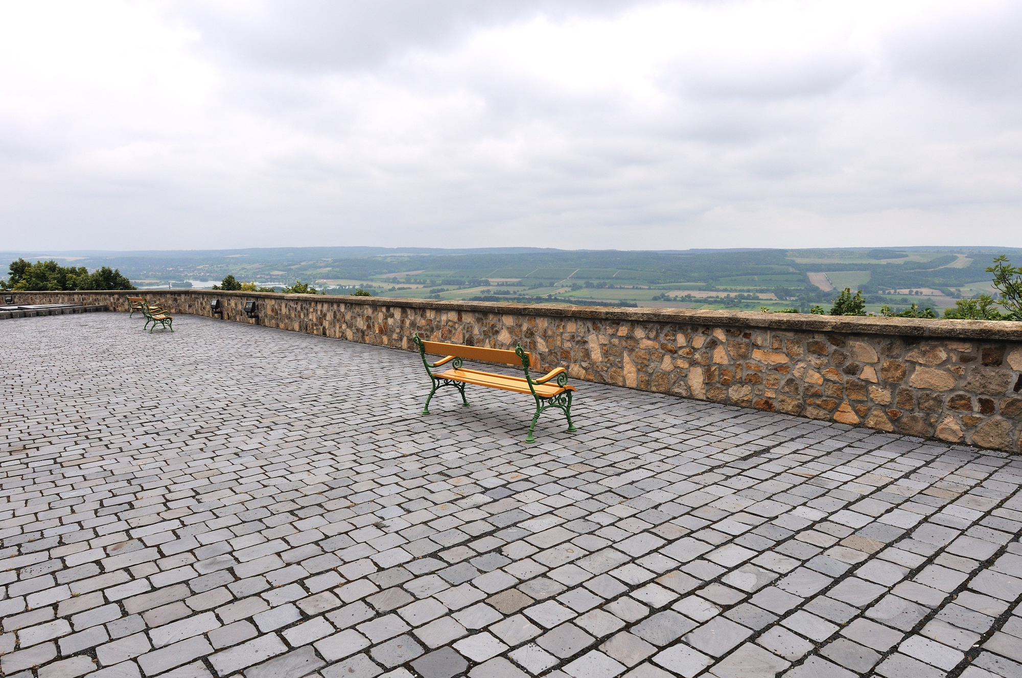 | パンノンハルマ集落を一望できるテラス (10:58)「南方向」MAP パンノンハルマ修道院は海抜282mの聖マールトンの丘 (パンノニアの聖なる丘) の頂上にあり、ここからは人口約3600人のパンノンハルマ集落を一望できる。 古代ローマ時代 (約2000年前) には、ハンガリーはローマの属州であり、当時のローマ人はこの地をパンノニア [Pannonia] と呼んでいた。 このパンノンハルマの語源は古代ローマ時代のパンノニア [Pannonia] に由来している。 |