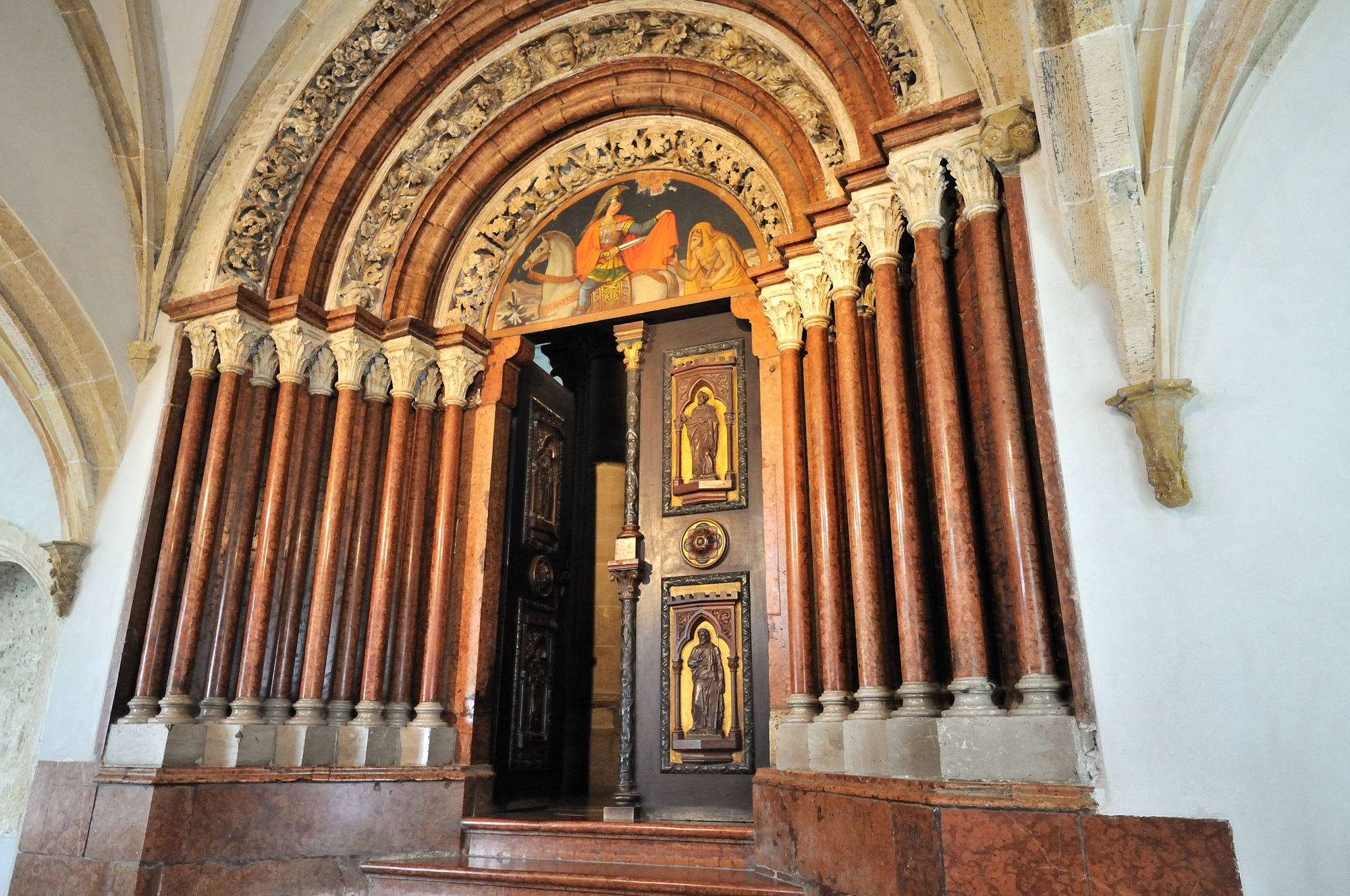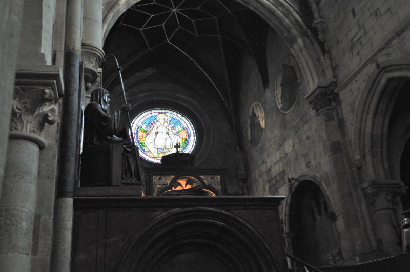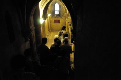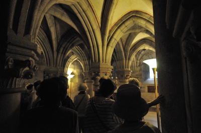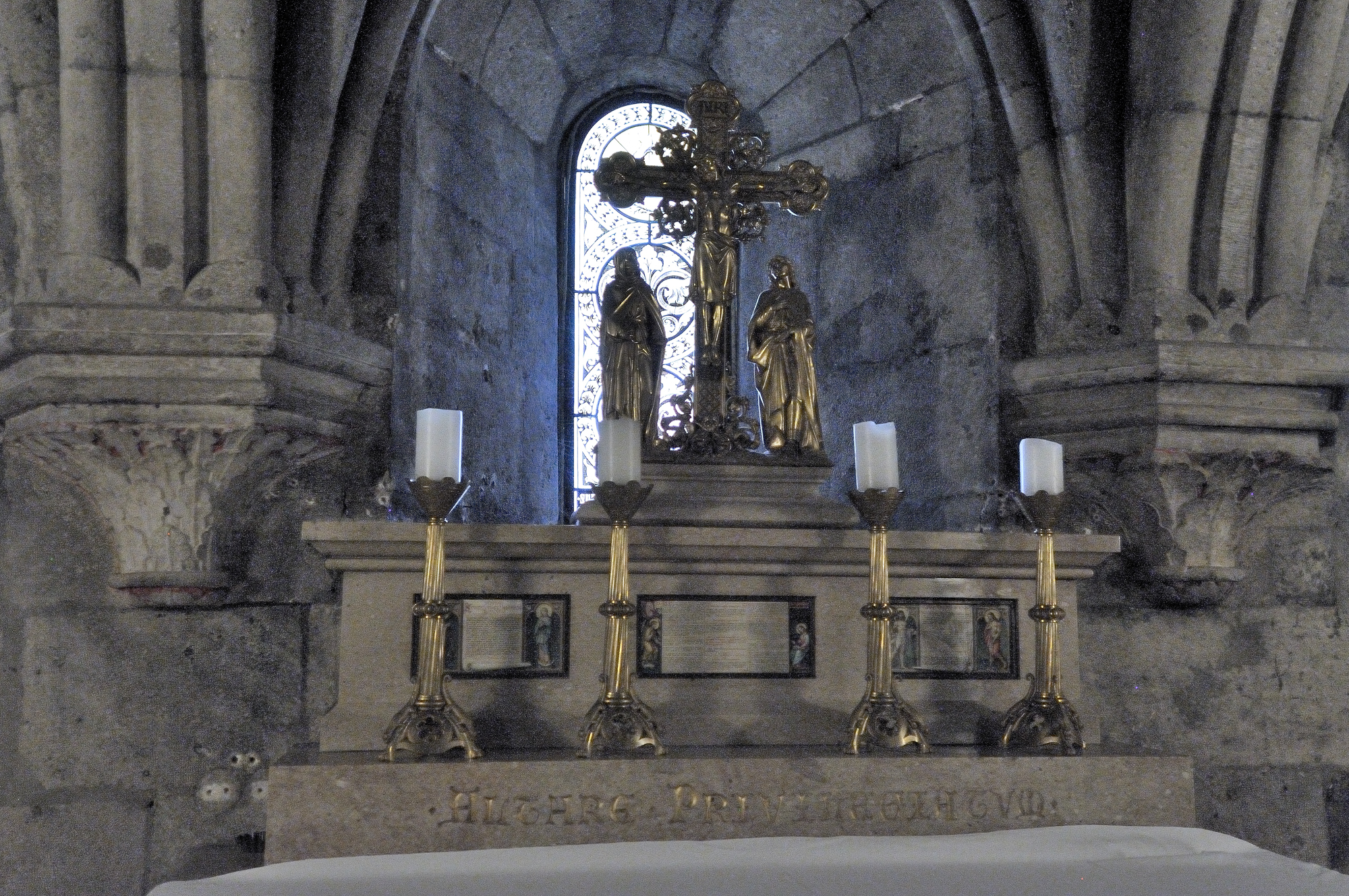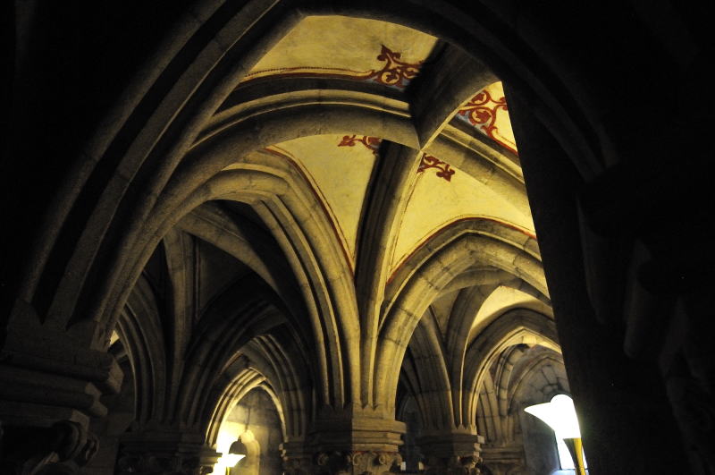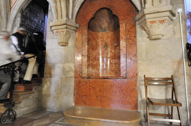 中世の頃は、教会の主祭壇の下に玉座を設けるのが一般的だった。 この地下室は一部19世紀に修復されたものの、殆どの物は13世紀に造られたままの姿で遺されている。 |