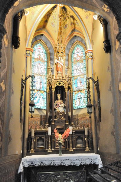 礼拝堂が造られたのは16世紀。 ステンドグラスや置かれている装飾品は19世紀に入ってからの物。 |