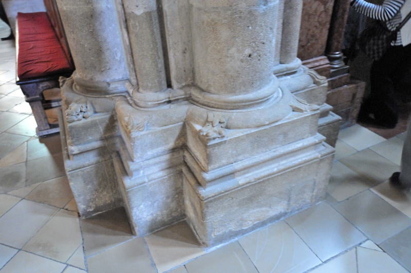 柱の台座部分にはカエルや葡萄などの彫刻が施されている。 これは13世紀に造られた物。 |