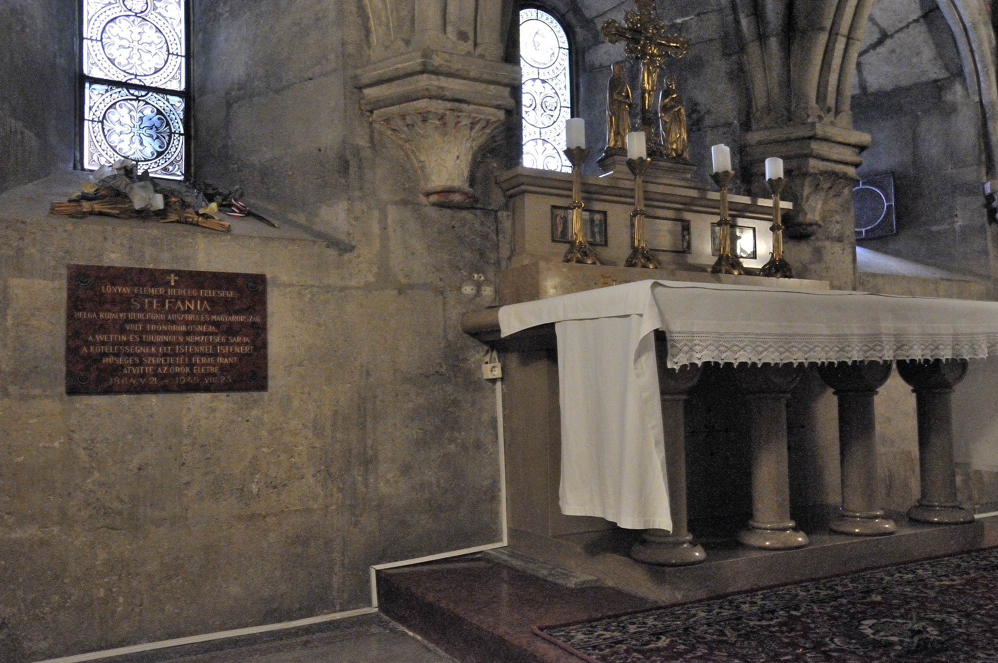 主祭壇の下にあるステファニーと2番目の夫、ローニャイ・エレメール伯爵の墓地へ向かう |