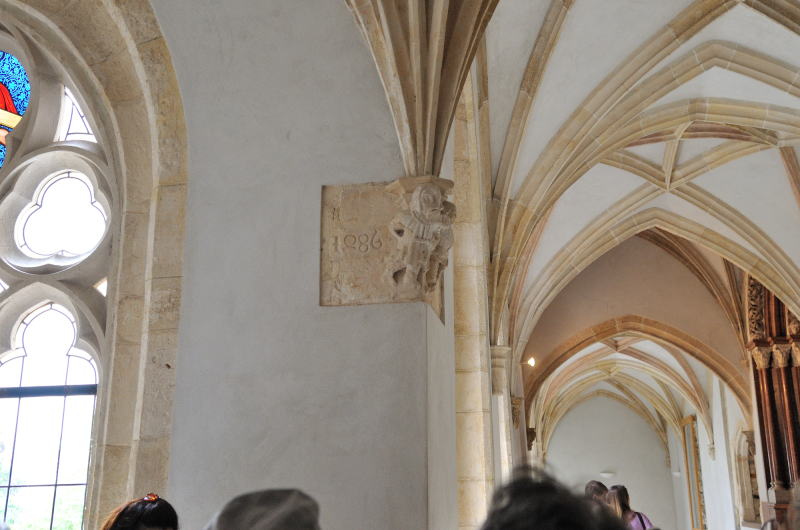この数字は判じ物で、回廊が出来た1486年を表している。(左から二つ目の文字は8の半分で4と読むそうです。) |