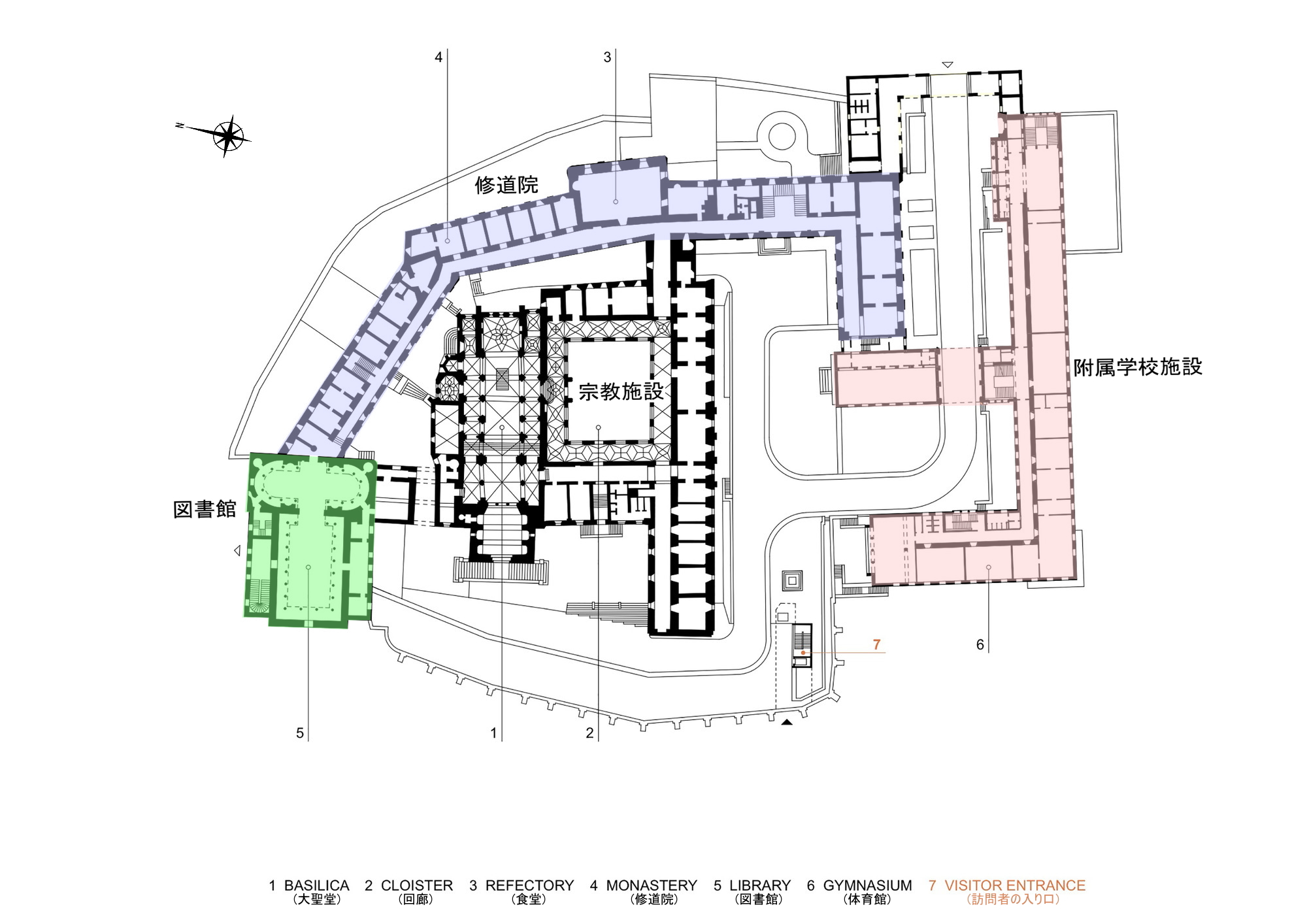 | 修道院の中にある図書館 (古文書館) へ向かう (11:40)「東方向」MAP |