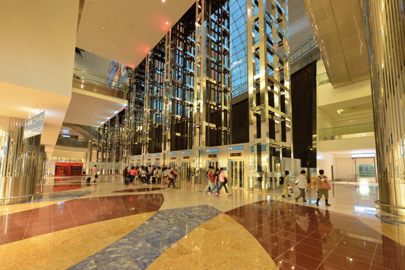| ドバイ国際空港 [Dubai International Airport] (5:30) Gate B 構内のエレベーター前 (このエレべーターはフジテック製) 「南」MAP Lay.A |