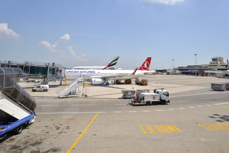 | ミラノ・マルペンサ国際空港 [Milano Malpensa Airport] (14:21) イタリアのミラノ空港に到着、到着通路より撮影 「東南東」MAP Lay.A |