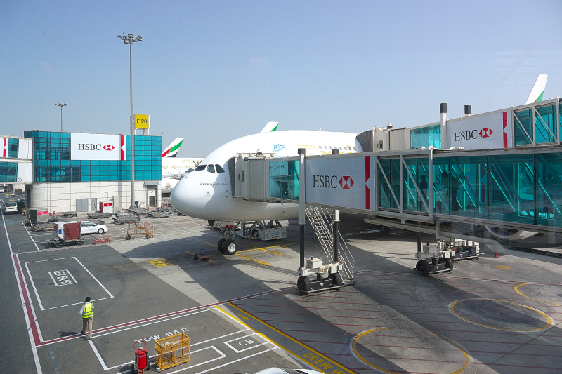 | ドバイ国際空港 [Dubai International Airport] (9:18) ドバイ発9:45の搭乗機 AIRBUS [A380-800] 「北」MAP Lay.A |