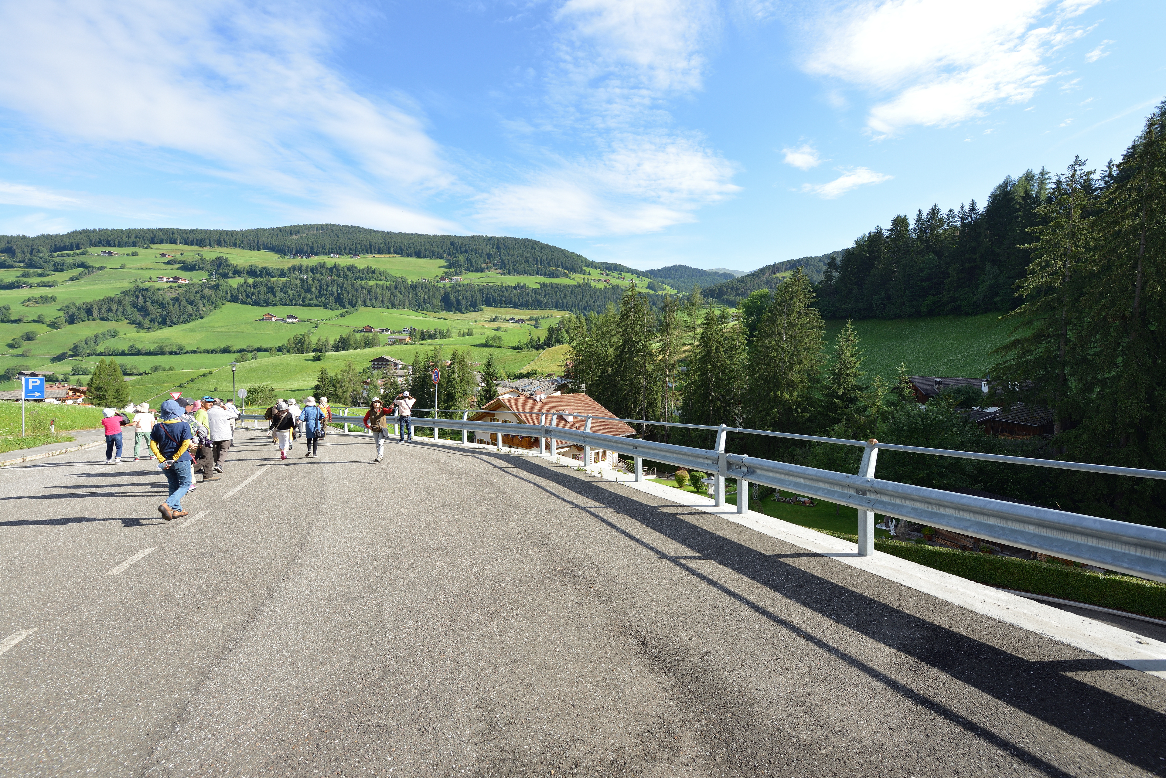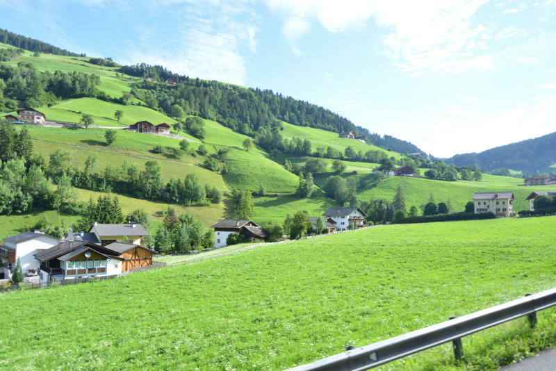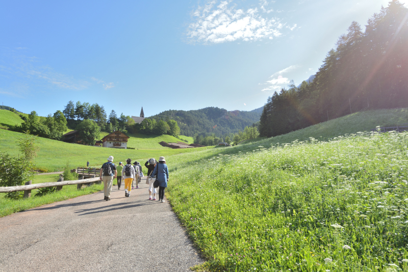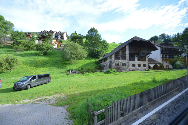 | サンタ マッダレーナ教会からの帰路 (9:41) この後、「ドロミテの宝石」と呼ばれる美しい湖、カレッツァ湖へ向かう。 「西南西」MAP Lay.A |