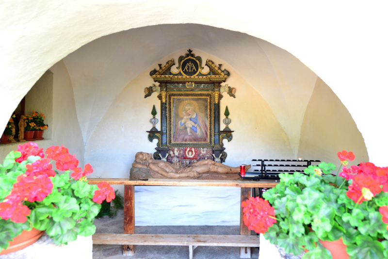 | サンタ・マッダレーナ 教会 [Chiesa di Santa Maddalena] (9:22) 左側の小さな祭壇の像はルルドの聖母像、右側の小さな祭壇の像はパドヴァの聖アントニウス象。 「東」MAP Lay.A ルルドの聖母1858年2月11日、村の14歳の少女ベルナデッタ・スビルー(フランスでは「ベルナデット」)が郊外のマッサビエルの洞窟のそばで薪拾いをしているとき、初めて聖母マリアが出現したといわれている。当初、聖母出現の噂は、当然ながら教会関係者をはじめ多くの人々から疑いの目を持って見られていた。 神父はその女性の名前を聞いて来るように少女命じた。 何度も名前を尋ねた末に、女性は、自分を「無原罪の御宿り」であると、ルルドの方言で少女に告げた。それは「ケ・ソイ・エラ・インマクラダ・クンセプシウ」という言葉であったという。 少女は、当時の教会用語であったラテン語どころか、標準のフランス語の読み書きさえ出来なかったたため、当初は懐疑的だったペイラマール神父も周囲の人々も聖母の出現を信じるようになった。 以後、聖母がこの少女の前に18回にもわたって姿を現したといわれる場所に聖母像を建てた。 以来、この聖母像はルルドの聖母として伝承されるようになり、現在に至っている。 ルルド [Lourdes] はフランス南西部のピレネー山脈の麓に位置し、「ルルドの泉」としても知られ、カトリック教会の巡礼地になっている。) 聖パドヴァのアントニオ(イタリア語:Sant'Antonio di Padova、1195年 - 1231年6月13日)、パドアのアントニオは、カトリック教会で、失せ物、結婚、縁結び、花嫁、不妊症に悩む人々、愛、老人、動物の聖人とされている。彼の絵画や肖像では、幼子のキリストを抱き、本とユリの花、パンがともに描かれている。 |