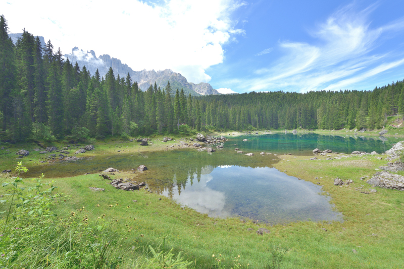 | カレッツァ湖 [Lago di Carezza] (12:01) 水深によって水の色が違って見えている。 「南」MAP Lay.B |