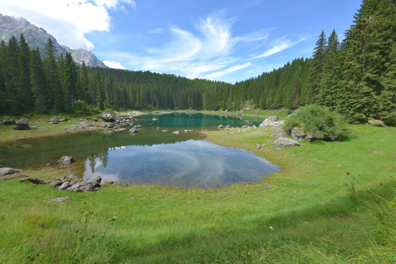 | カレッツァ湖 [Lago di Carezza] (11:40) 湖はモミの森で囲まれている。 「西南西」MAP Lay.B |