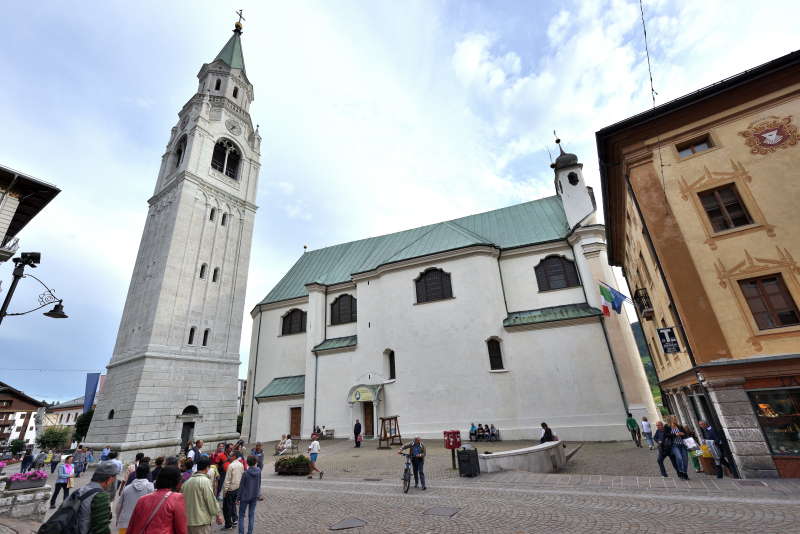 | 聖フィリップとヤコブの大聖堂 [Basilica dei Santi Filippo e Giacomo] (18:48) この大聖堂は、 町の中心部、有名なコルソ・イタリア とメルカート通りの間に位置し、1769 年から 1775 年にかけて、13 世紀と 17 世紀に以前 2 つの教会があった場所に建てられた。 「南」MAP Lay.D 鐘楼 [Campanile] (カンパニーレ)は、非常に有名で、コルティナ ダンペッツォの紛れもないシンボルとなっています。 アンペッツォの建築家シルベストロ フランチェスキによって1852 年から1858 年にかけて、以前の 16 世紀後半の鐘楼の代わりに建てられたこの塔は、高さ 65.8 メートルで、アンペッツォの人々が言うように、「チロル風でもない」と言う、落ち着いたエレガントで荘厳なスタイルです。 出典:Wikipedia |