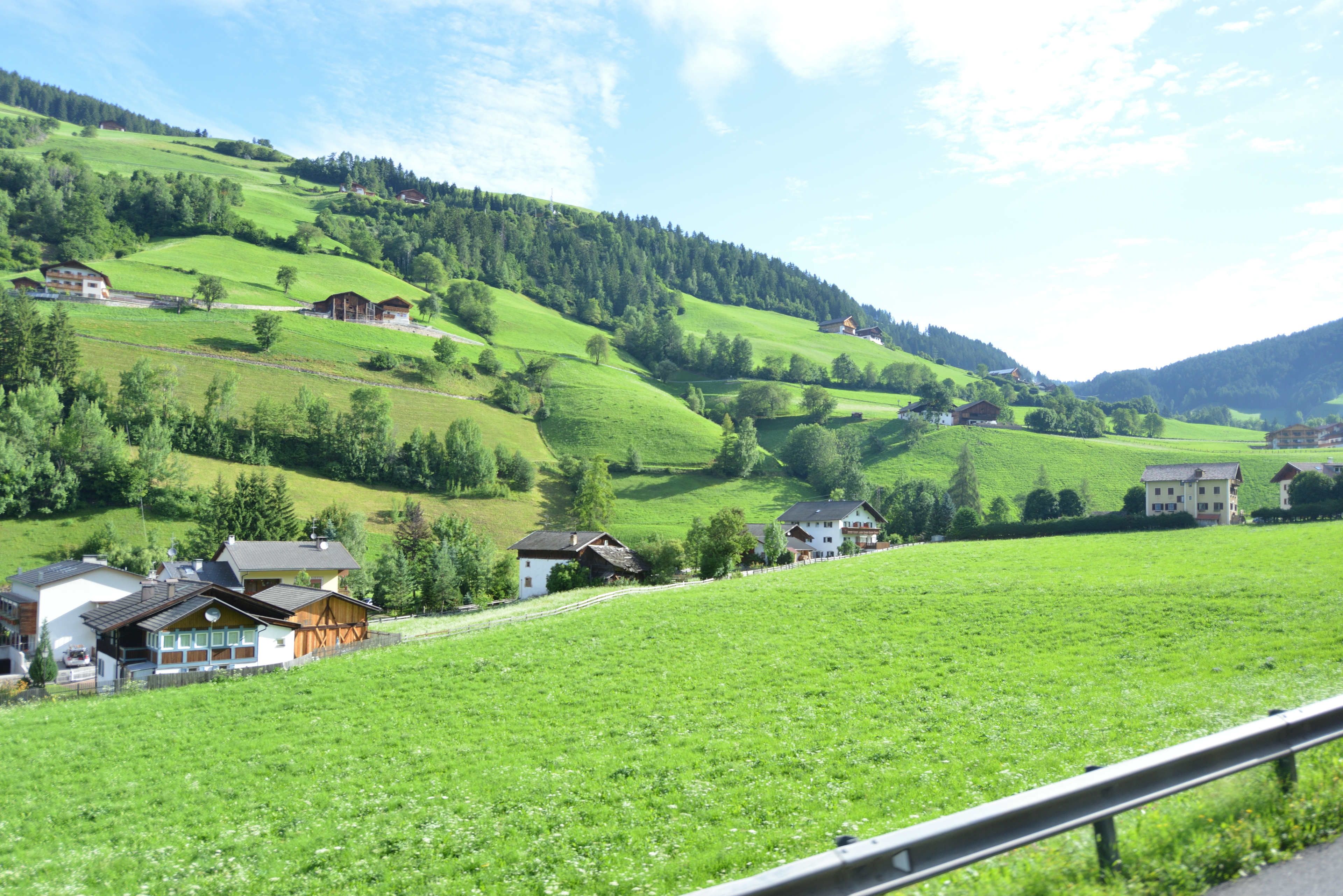 | サンタ・マッダレーナ村 [Santa Maddalena] (9:13) 遠方に見える岩山は、ガイスラー [Geisler] ( 世界遺産) 山群。 ガイスラーは標高 3,025 メートルで、ドロミテの最も美しい山塊としても知られており、その険しい輪郭が特徴。 「南南東」MAP Lay.A ドロミテの名の由来 2009年に世界自然遺産に登録されたドロミテ (イタリア語でドロミーティ) は、オーストリアとの国境近くに広がる北イタリアの山塊。 その地質学的にも特異な山容の連なりは、太古の地殻変動によって隆起した珊瑚礁が氷河に削られ、さらなる浸食作用で形成された。 ドロミテの名は、1789年と1790年にイタリアのチロルの調査旅行を行ったフランスの地質学者ドロミューが、炭酸カルシウムと炭酸マグネシウムの複塩鉱物 [CaMg(CO3)2] からなる鉱物を発見したことから、翌年、彼の名を取って、この鉱物は、ドロマイト (苦灰石、苦灰岩) と名付けられた。 その後、山塊はドロミテと呼ばれるようになった。 |