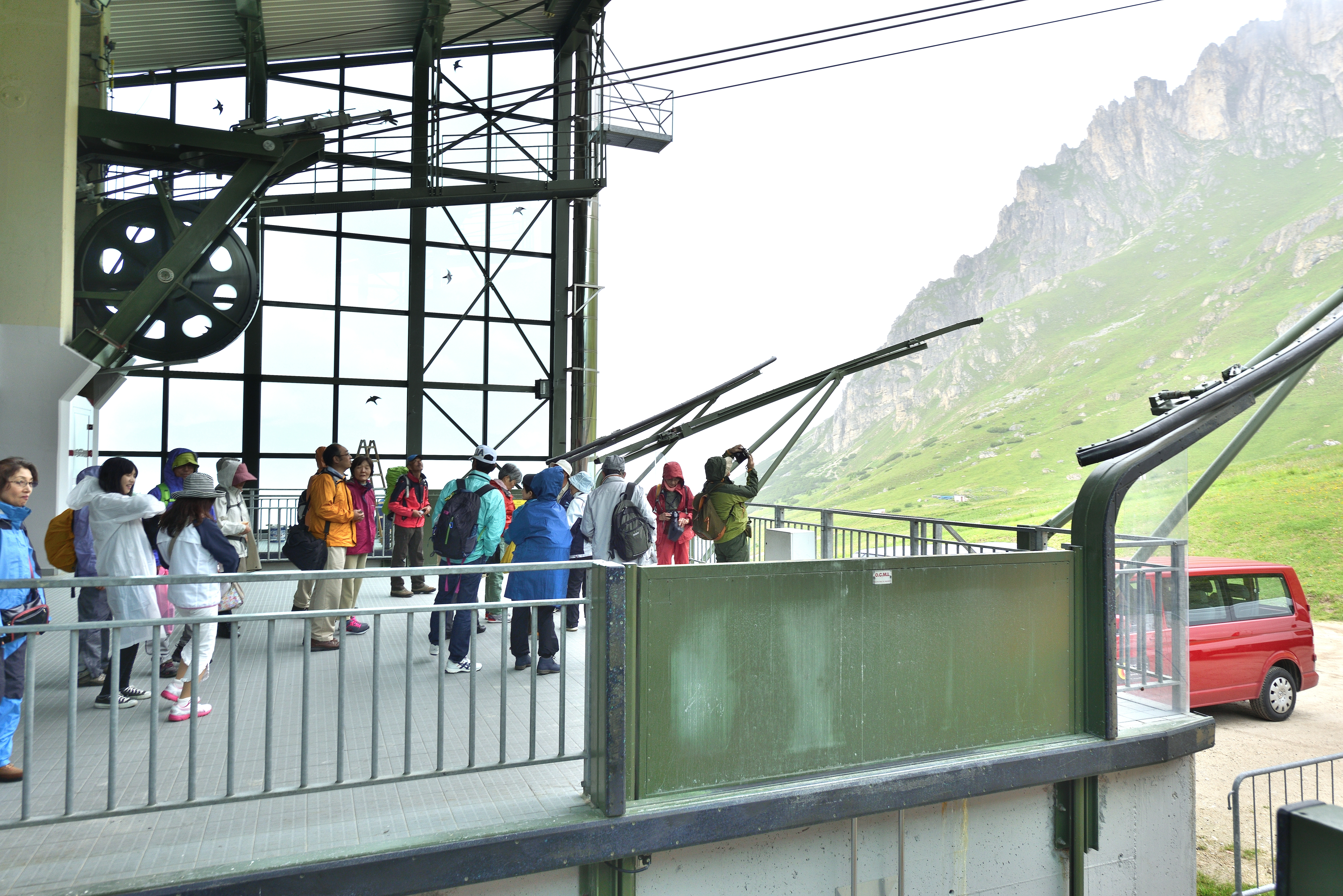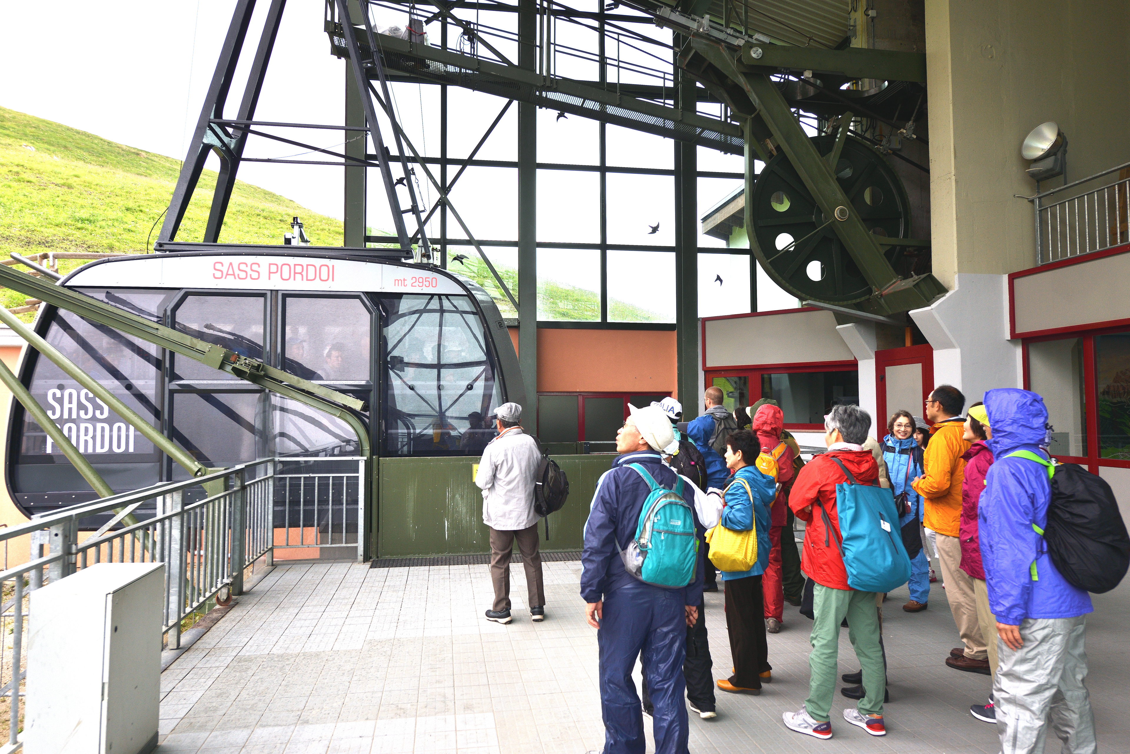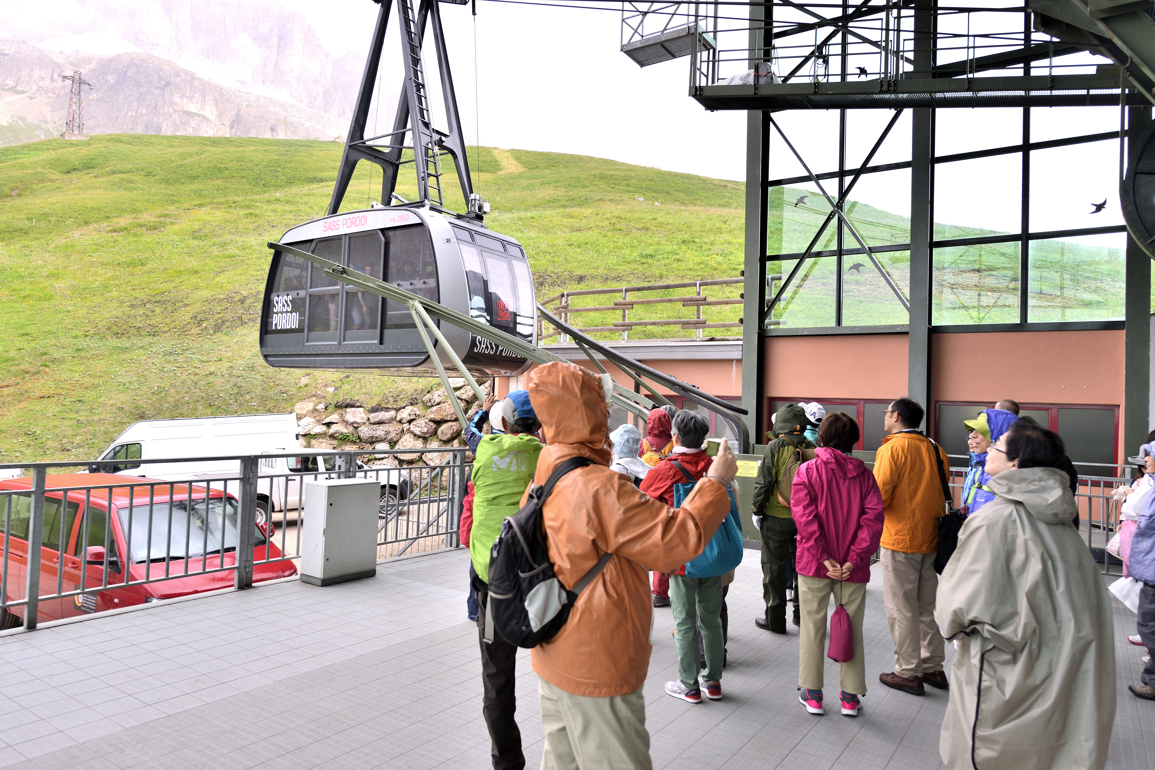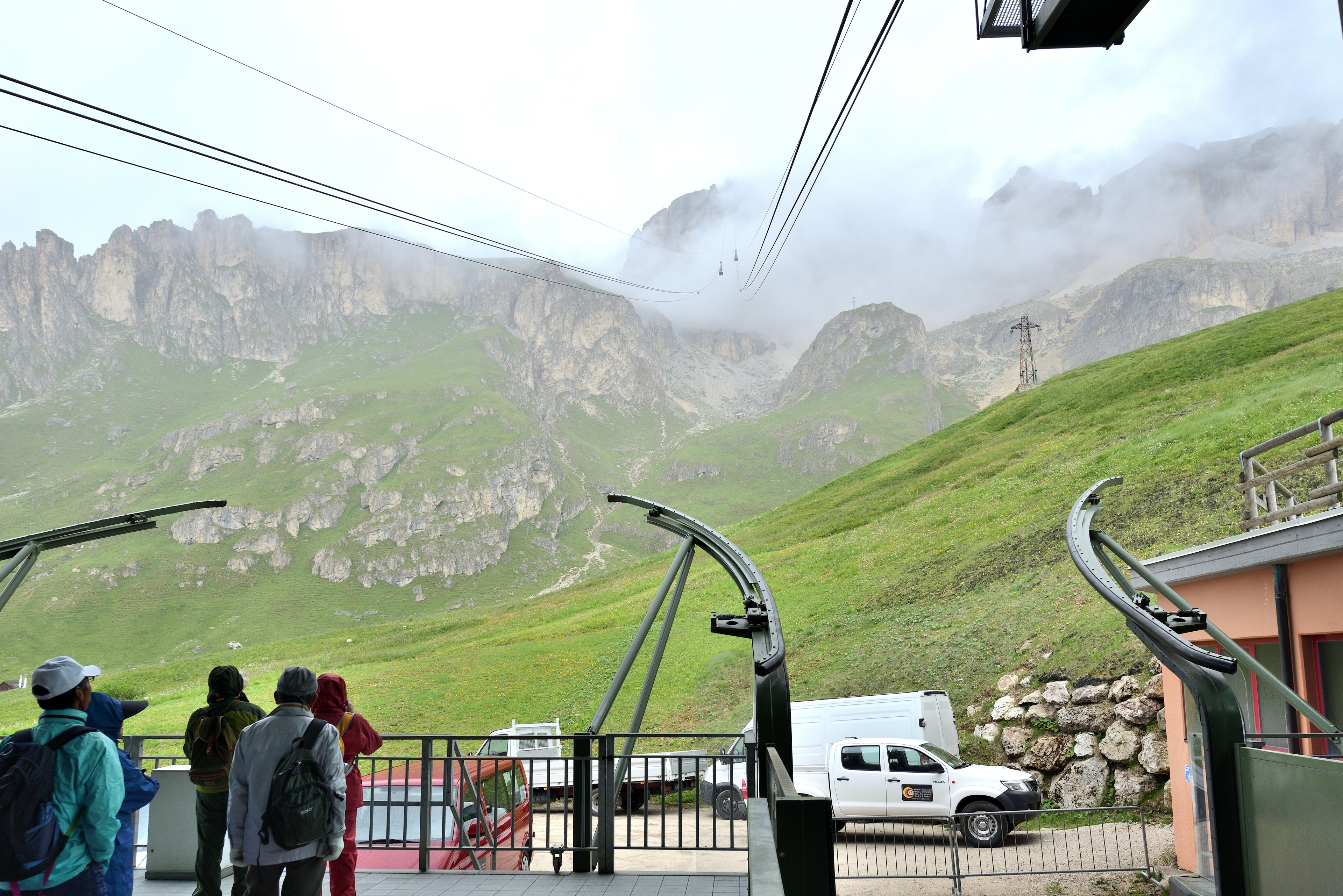 | Passo Pordoi ロープウェイ駅 (14:45) ロープウェイが到着、これから搭乗。 「東」MAP Lay.C |