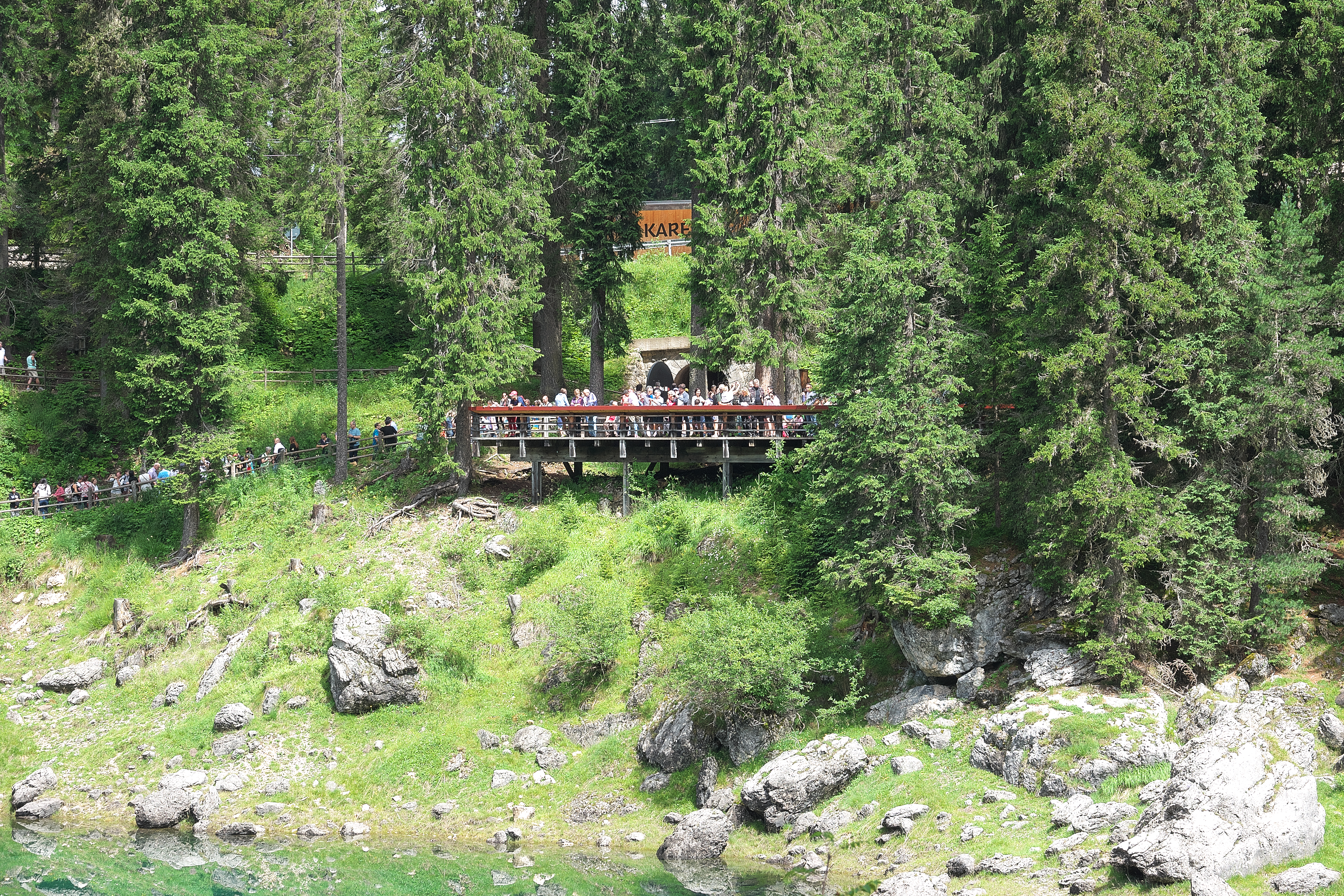 | カレッツァ湖 [Lago di Carezza] (11:43) 展望デッキの後ろには、地下通路の出入り口が見えている。 「北北西」MAP Lay.B |
