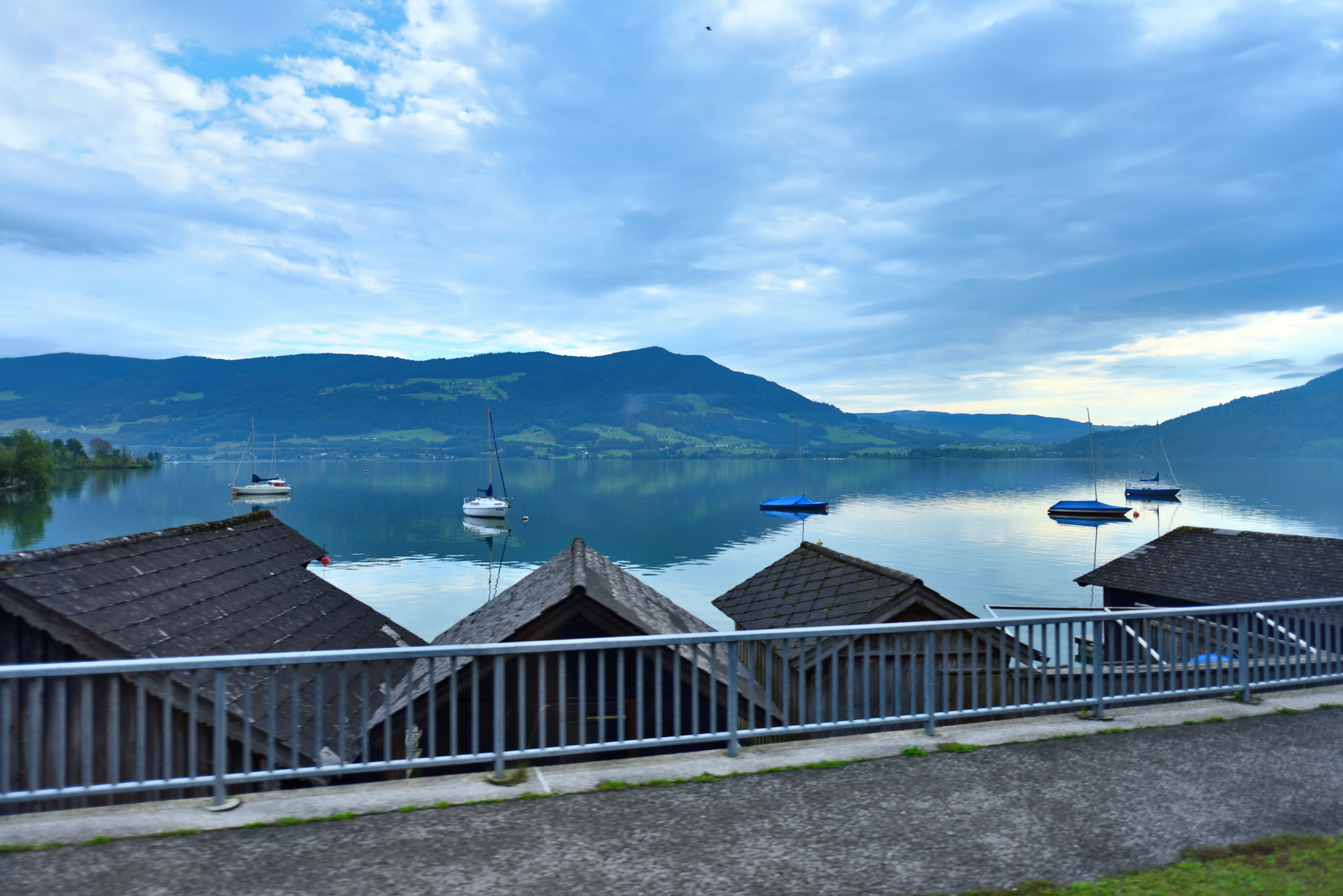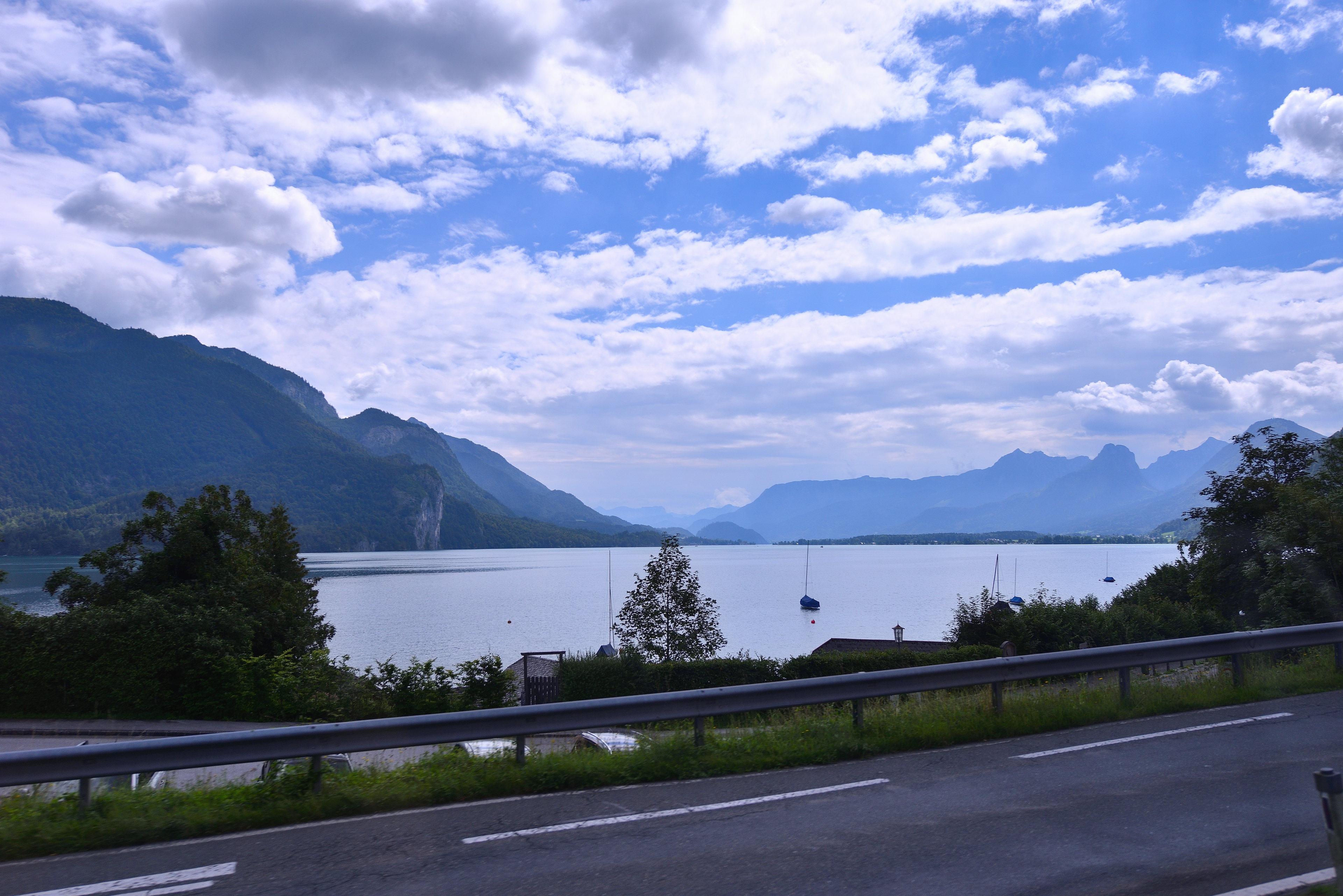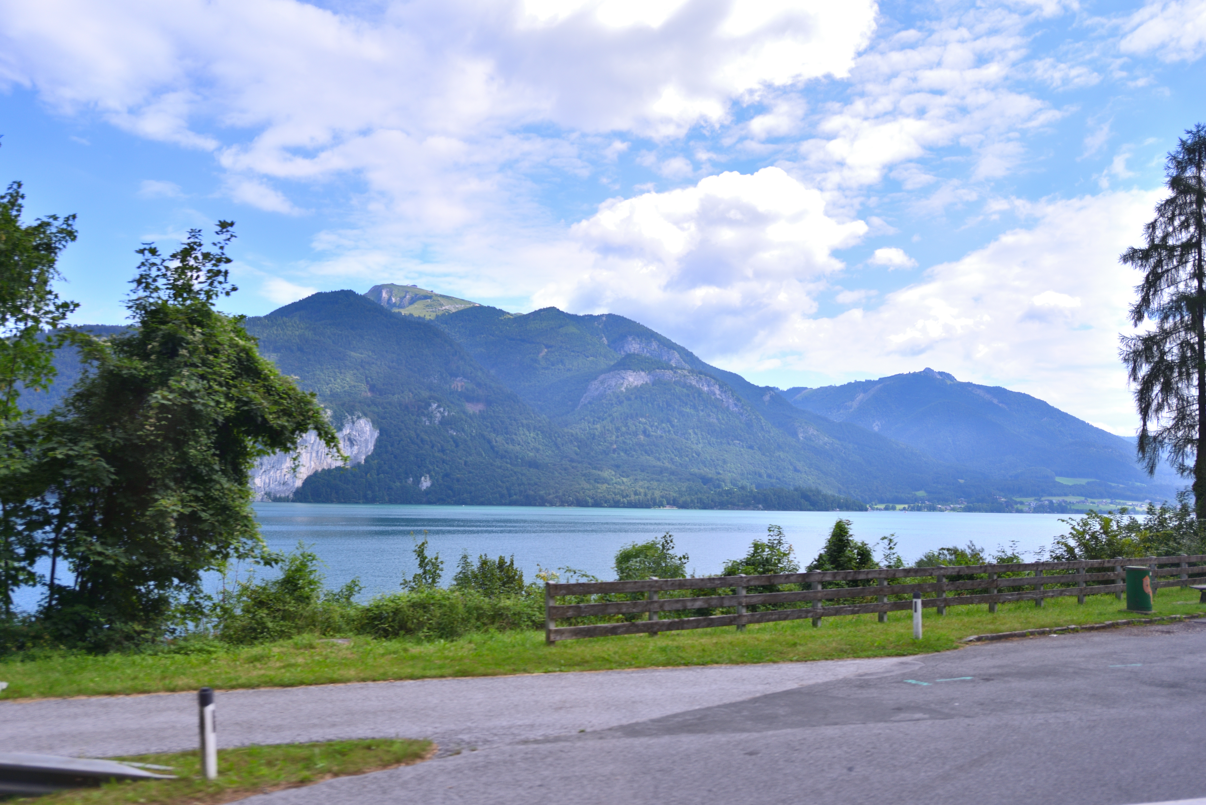 左に見える湖は、ヴォルフガング湖 [Wolfgangsee] 。
